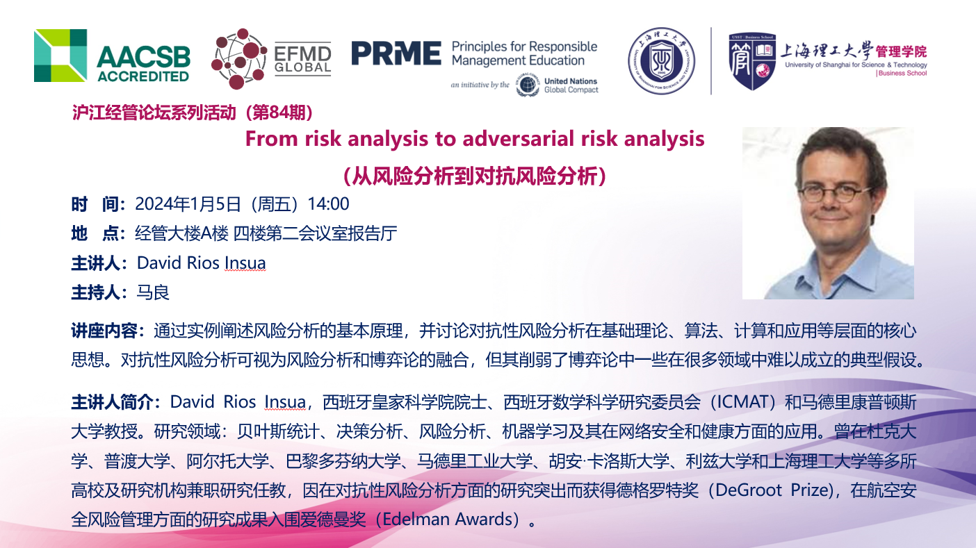 沪江经管论坛系列活动(第84期):From risk analysis to adversarial risk analysis