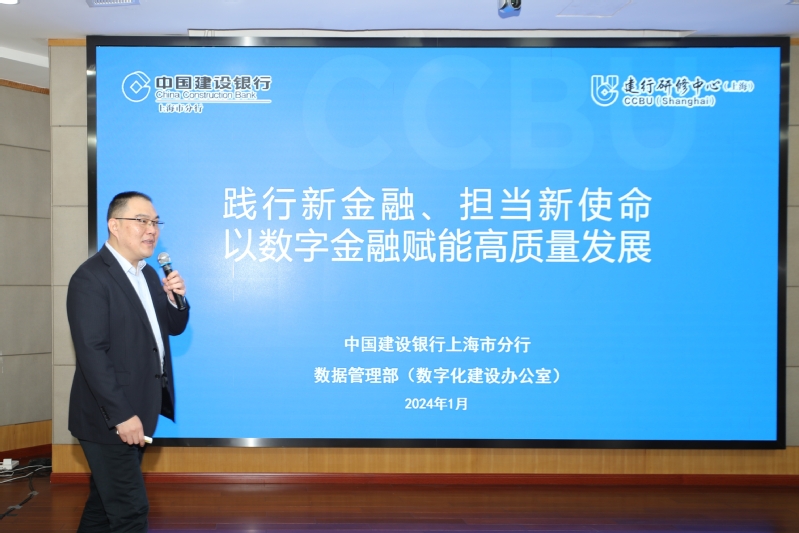 仪式结束后,建行上海市分行数据管理部总经理史唯白,为全体学员讲授了开班第一课:《践行新金融、担当新使命,深化数字化经营不动摇》。