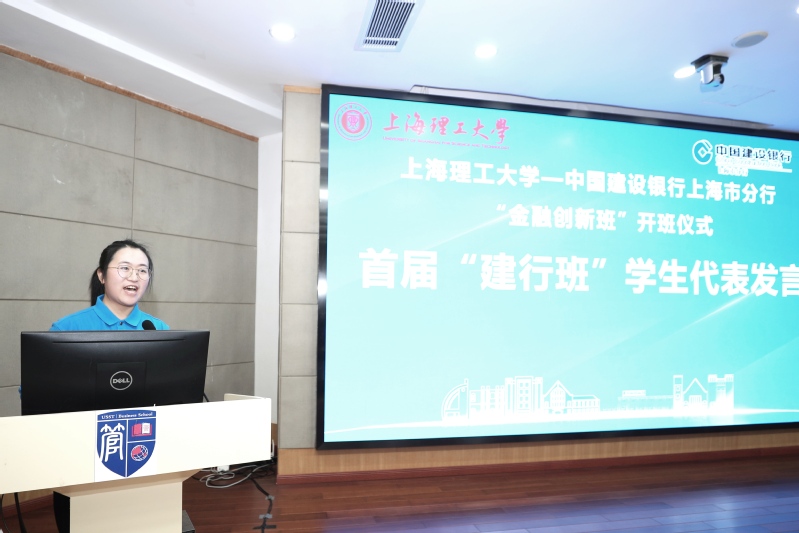 管理学院2021级交通运输工程专业硕士研究生张陈楠,代表首届“金融创新班”全体学员发言,感谢学校、建行提供的学习平台和实践机会,表示未来将秉承上理人“信义勤爱、思学志远”校训和建行人的“诚实、公正、稳健、创造”的核心价值观,努力学习,不断进取,成长为理论素养和实际操作能力兼备,创新思维和团队协作精神兼具的“新建行人”,不负学校和银行的期望。