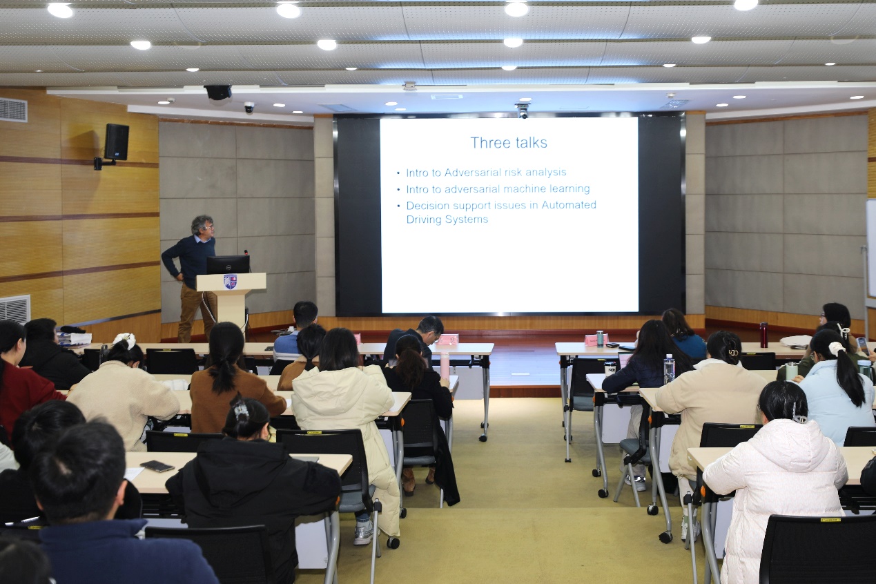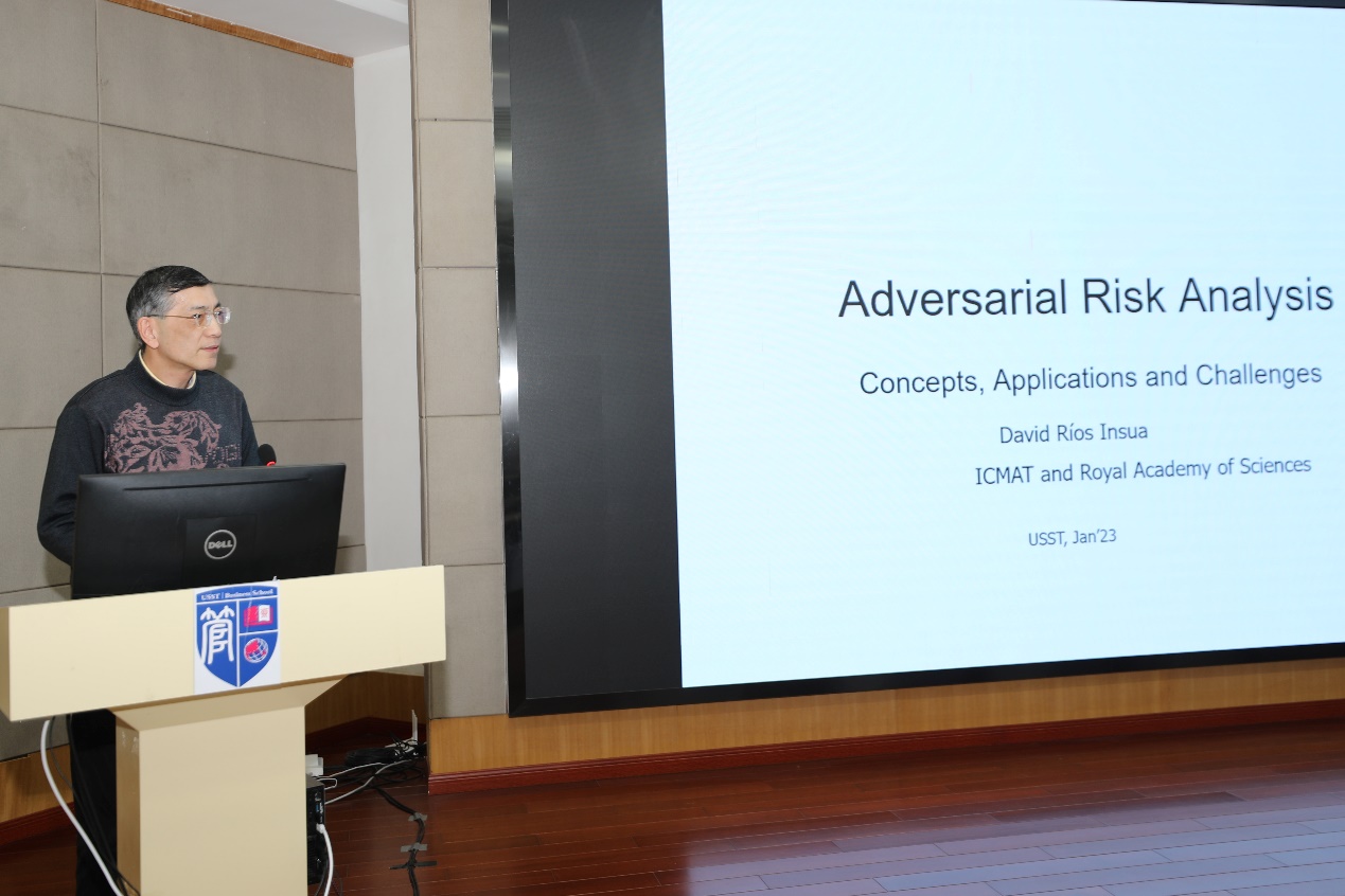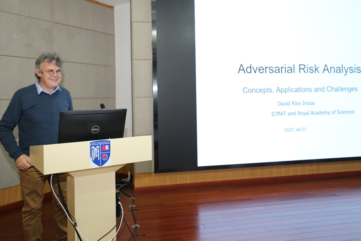 1月5日,西班牙数学科学研究委员会(ICMAT)主席、西班牙皇家科学院David Rios Insua院士受邀在管理学院A楼第二会议室报告厅进行了以“From risk analysis to adversarial risk analysis(从风险分析到对抗风险分析)”为主题的讲座。管理科学与工程学科带头人马良教授,信息管理与信息系统专业、人工智能专业等相关专业师生参与此次讲座。讲座由马良主持。