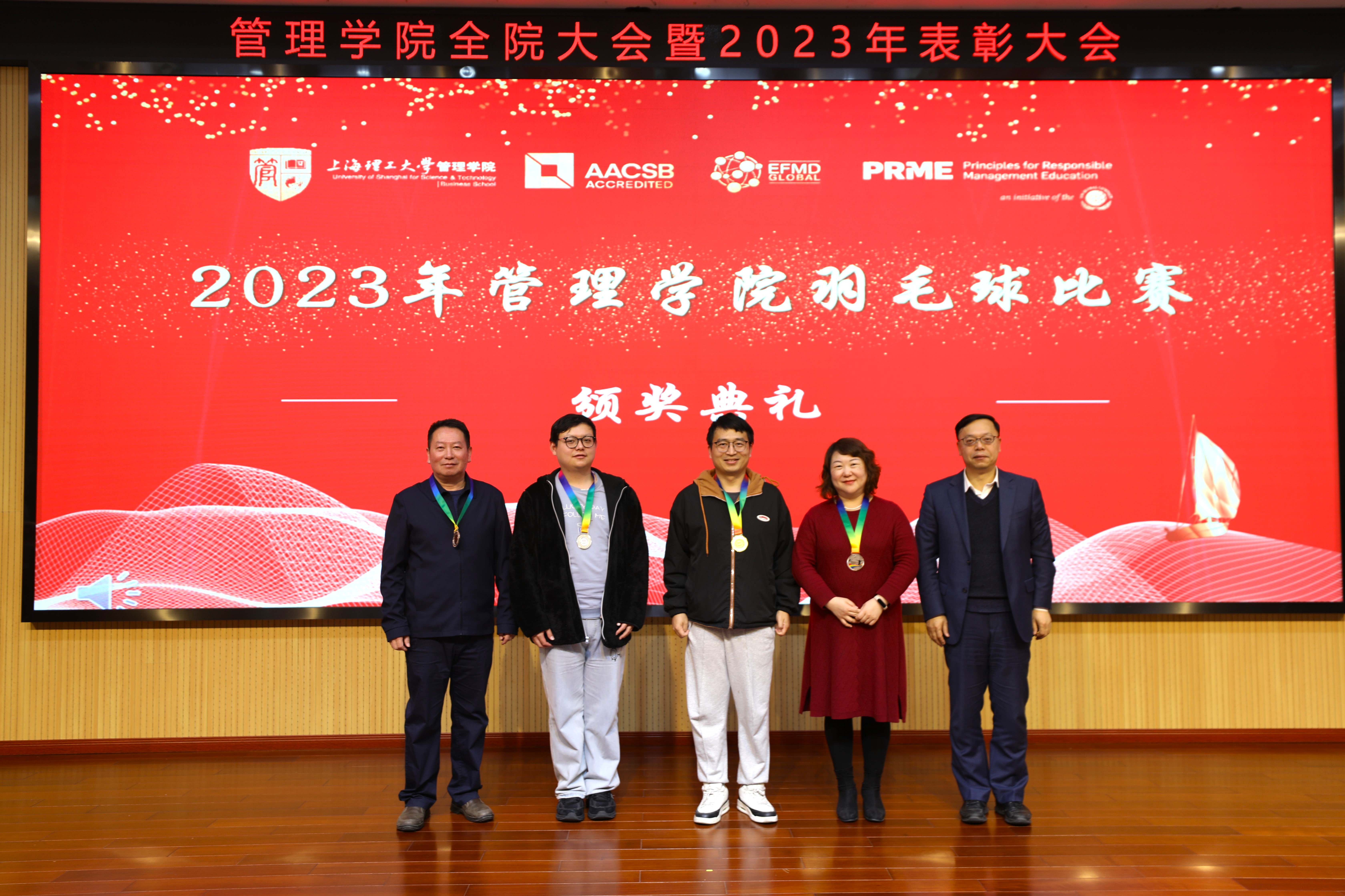 3月5日,管理学院在经管大楼A楼第一会议室举行2023年教职工羽毛球比赛颁奖典礼。