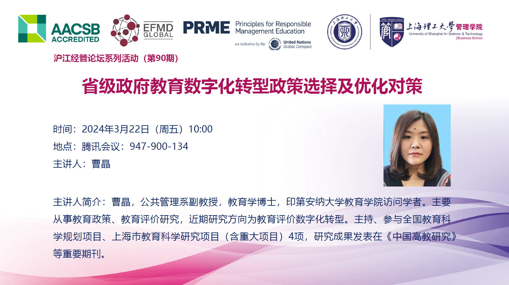 沪江经管论坛系列活动(第90期):省级政府教育数字化转型政策选择及优化对策