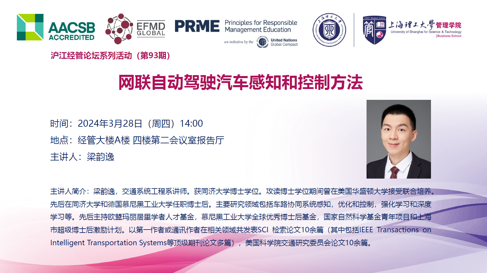 沪江经管论坛系列活动(第93期):网联自动驾驶汽车感知和控制方法