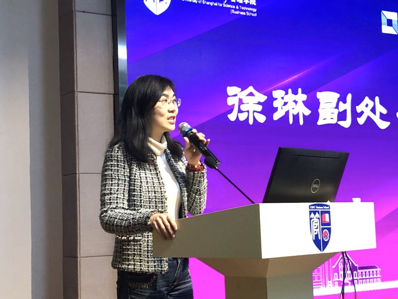 国际交流处副处长徐琳首先介绍了我校在国际交流方面的总体情况,以及同世界各知名高校的长短期合作交流项目。她表示国交处与学院携手,共同为大家带来更多优质的国际交流项目,并勉励同学们从这“理”走向更大的世界,勇于追逐梦想,实现人生价值。