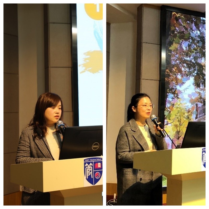 新加坡管理学院华东区主任王佳黎重点介绍了与我院正式签署的硕士合作协议项目,以及面向我院学生的优惠措施和条件。法国布雷斯特高等商学院北京留学基地负责人孙天宝重点介绍了面向我院学生的双学位项目以及相应优待政策。