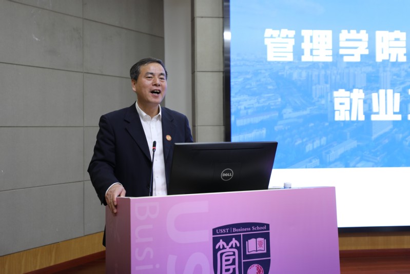 院长赵来军代表学院对各位领导的到来表示欢迎,对各部门对管理学院就业工作的支持和帮助表达感谢。他表示,虽然就业工作充满挑战,管理学院全体师生将全力以赴,采取多项措施力争完成今年的就业目标。他强调:全院上下要统一思想,提高认识,牢记服务宗旨,调动一切积极因素全力做好毕业生就业工作。要注意做好毕业生就业动态管理,及时更新未就业的学生名单,有关责任老师主动联系学生了解未就业原因,给予相应的帮扶;要加大访企拓岗的力度,主动联系企业和其他用人单位,挖掘更多适合我院毕业生的就业岗位;要重点做好困难毕业生“一对一”就业帮扶工作。