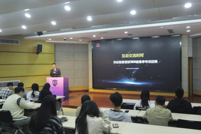 随后,朱凯先生与李俊女士一同解答了同学们关于招聘流程、岗位详情、具体要求以及入职后的学习计划、培训、轮岗等方面的疑问。他们耐心细致的解答赢得了现场同学们的阵阵掌声,气氛热烈而融洽。此次宣讲招聘会的成功举办,为我校学生提供了深入了解华为及供应链管理领域的宝贵机会,同时也为双方进一步深入合作和发展奠定了坚实的基础。