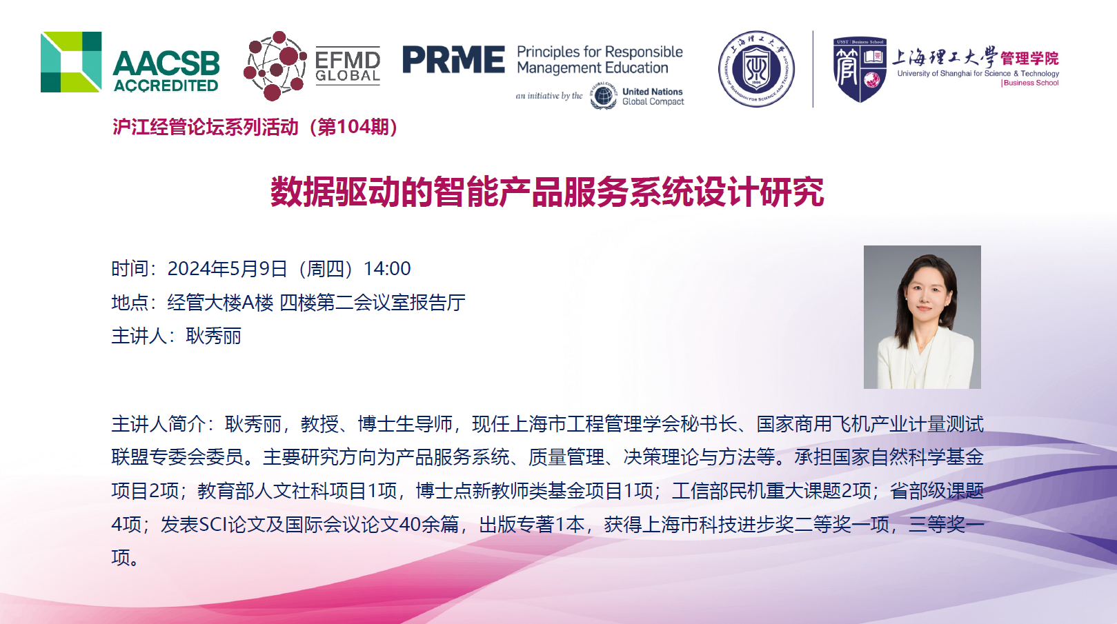 沪江经管论坛系列活动(第104期):数据驱动的智能产品服务系统设计研究