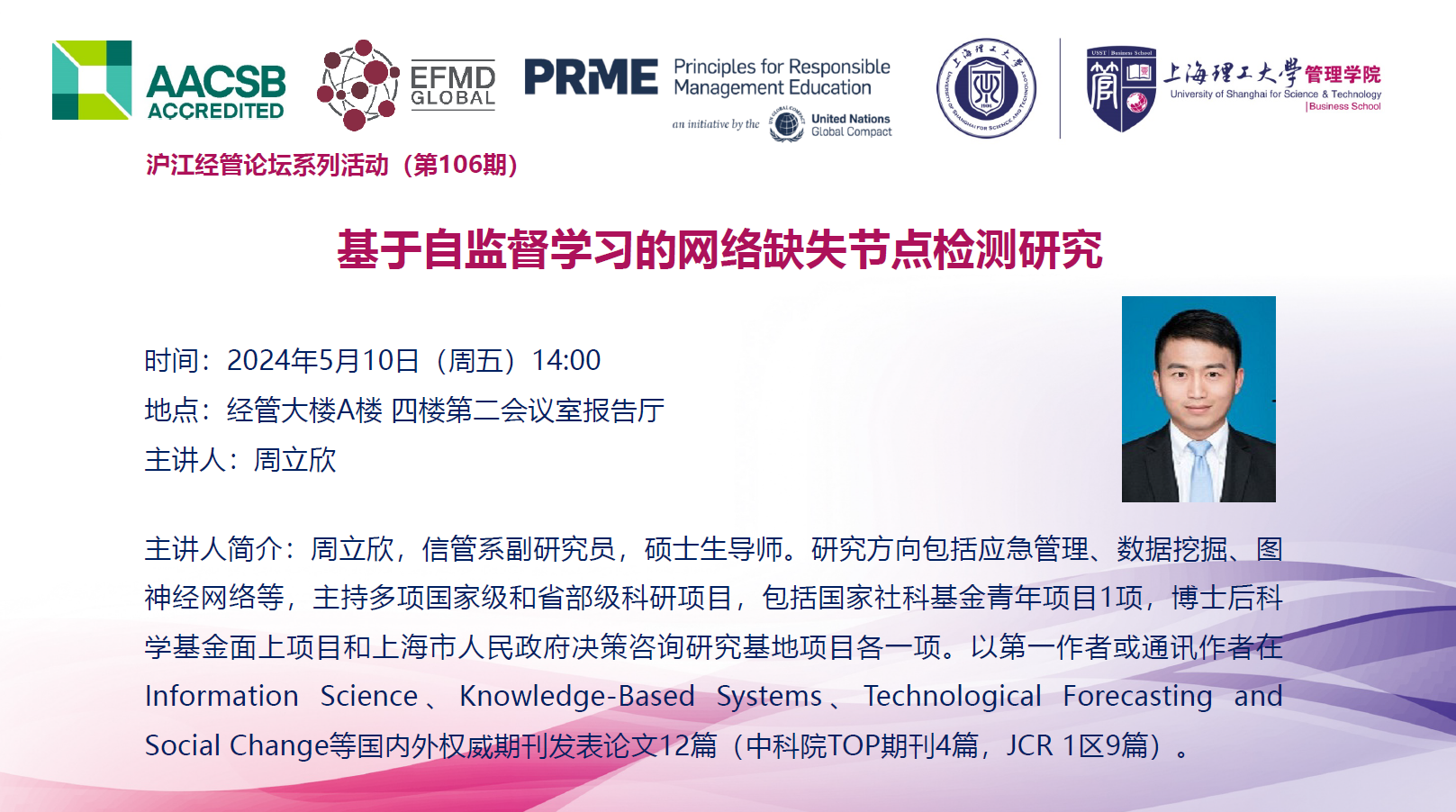 沪江经管论坛系列活动(第106期):基于自监督学习的网络缺失节点检测研究