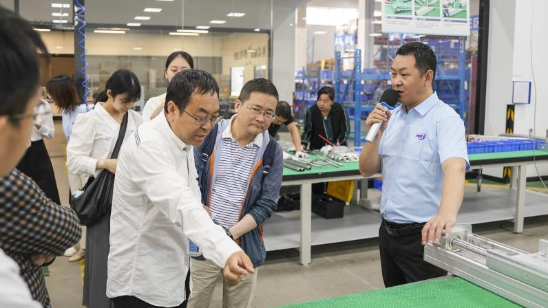 此次访企活动的首站是华成智能制造科技产业园的苏州云雀机器人科技有限公司。在企业研发负责人的陪同下,师生们参观了公司生产车间,详细了解了直线模组、伺服电动缸、直线电机等机械产品的研发和制造原理。通过现场观摩和技术讲解,双方就业务内容、产品特点及技术难题等方面进行了深入交流,并探讨了产学研合作的契合点。
