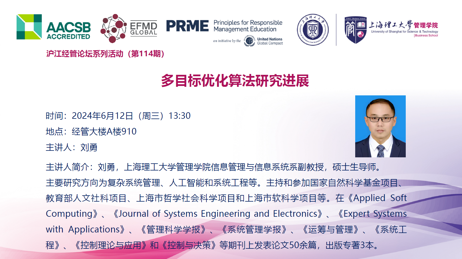 沪江经管论坛系列活动(第114期):多目标优化算法研究进展