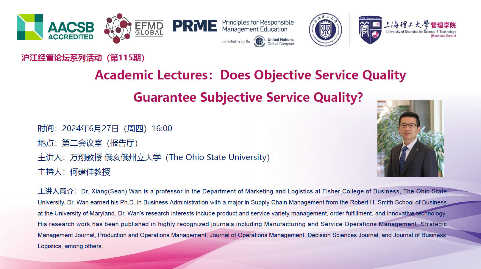 沪江经管论坛系列活动(第115期):Does Objective Service Quality Guarantee Subjective Service Quality?