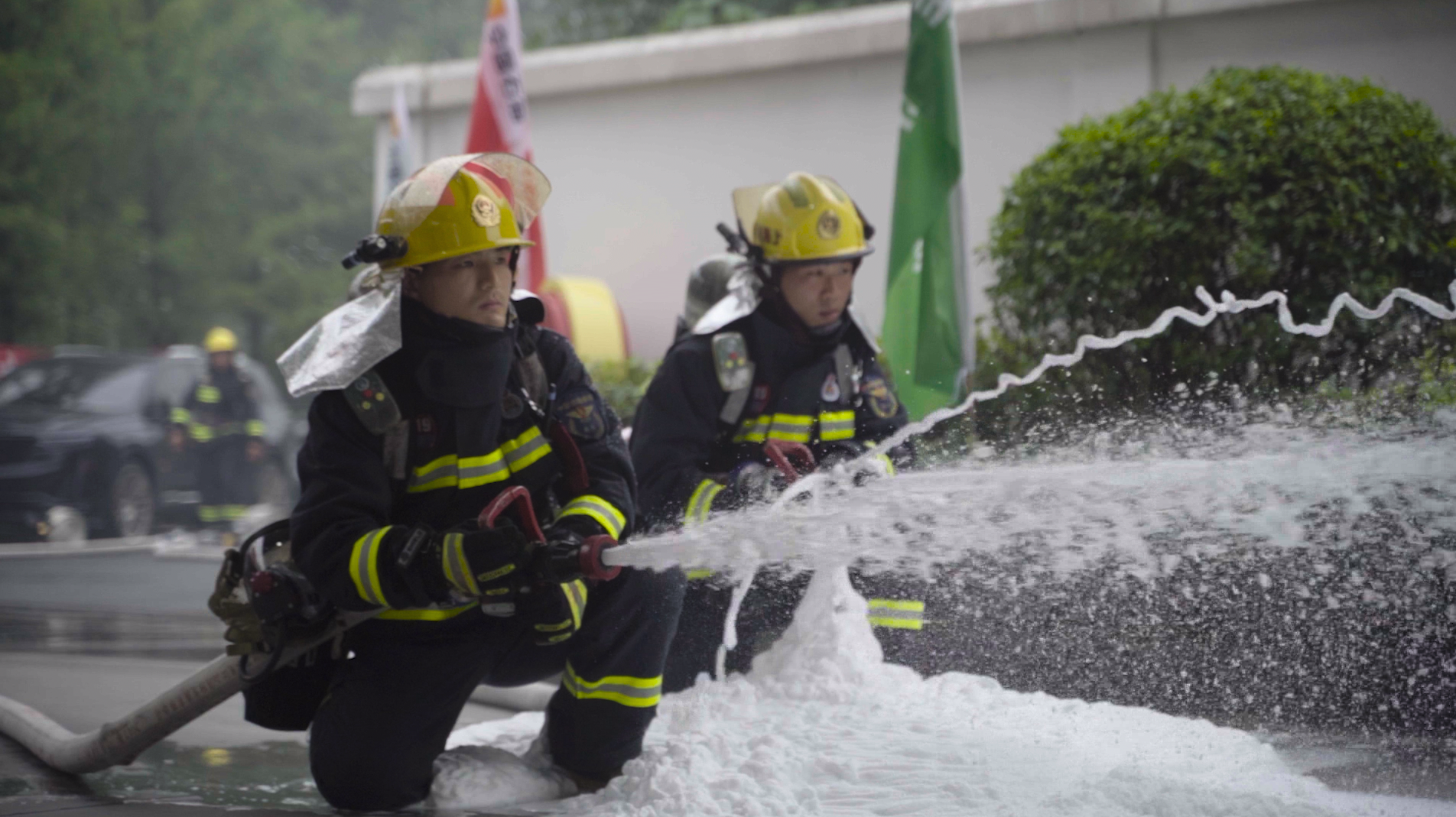 揭牌仪式开始前,加油站开展了突发火灾应急预案演练,演练人员模拟加油作业起火环境,在场员工按照应急预案规范分工协作、有条不紊进行现场灭火处置,疏散现场顾客,同时拨打119报警电话请求消防支援,随即消防车到达现场扑灭火情。