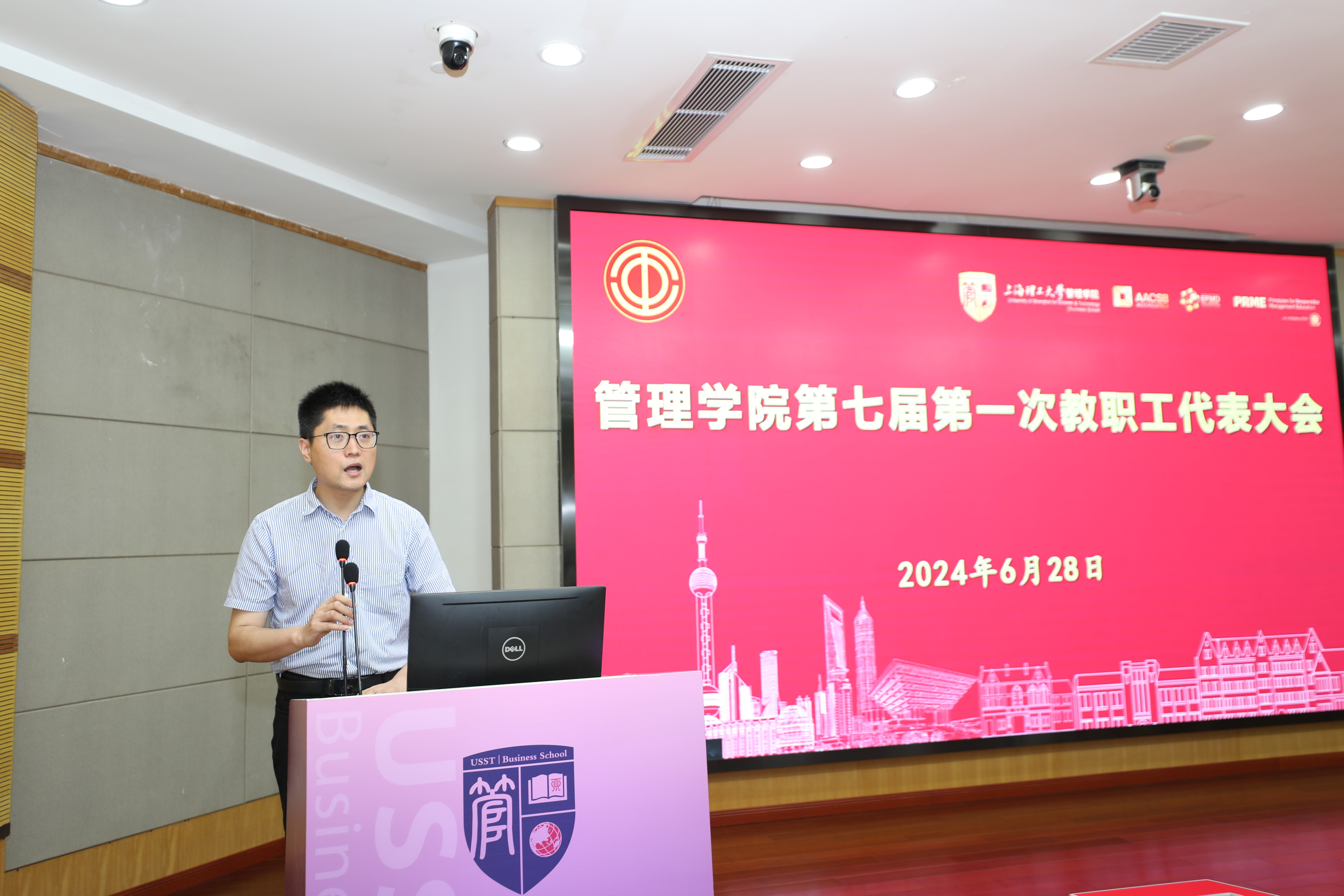 6月28日,管理学院第七届教职工代表大会第一次会议在经管大楼A楼第二会议室(报告厅)召开。学院党政领导班子成员、教代会代表参加本次会议。会议由学院工会主席刘勤明主持。
