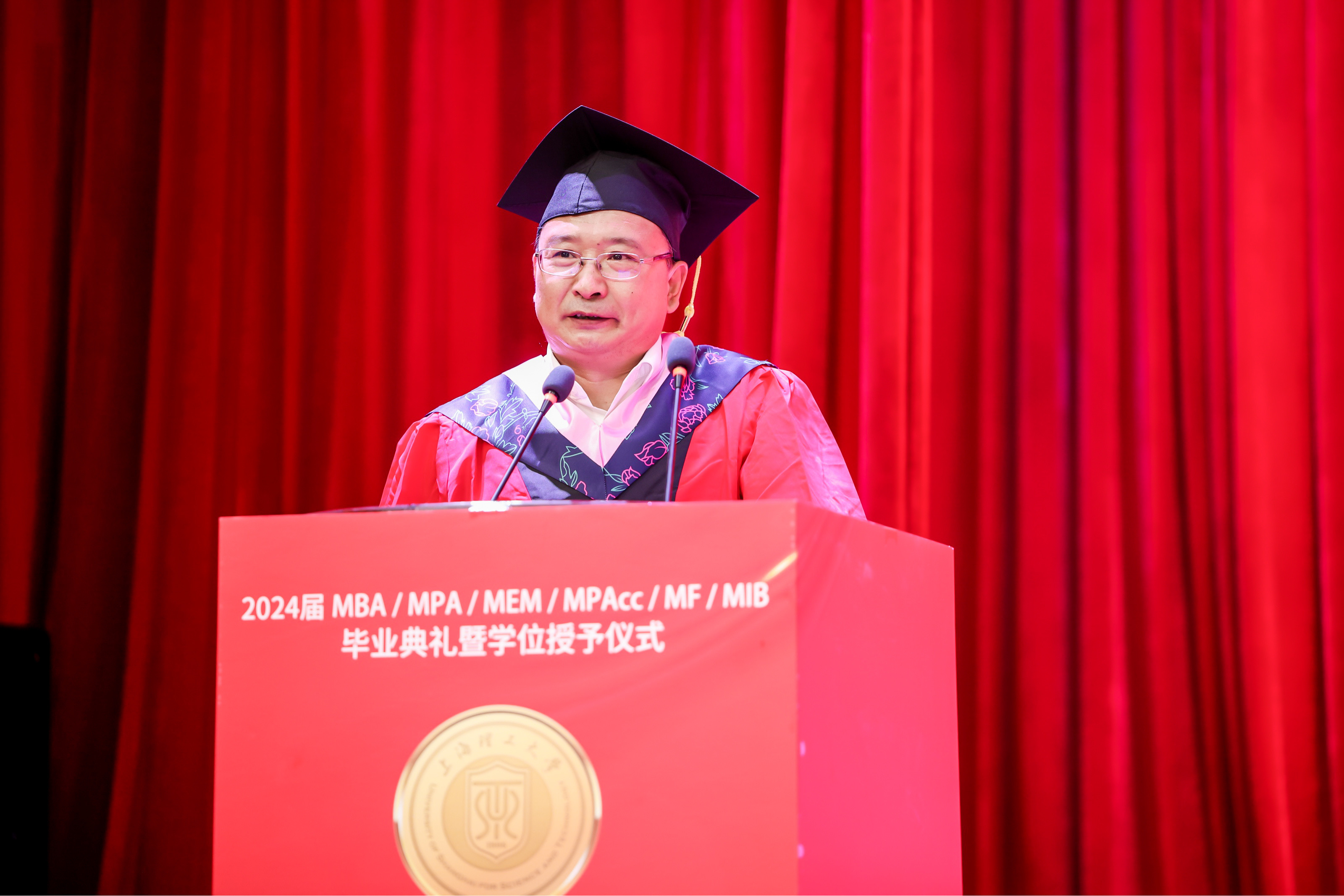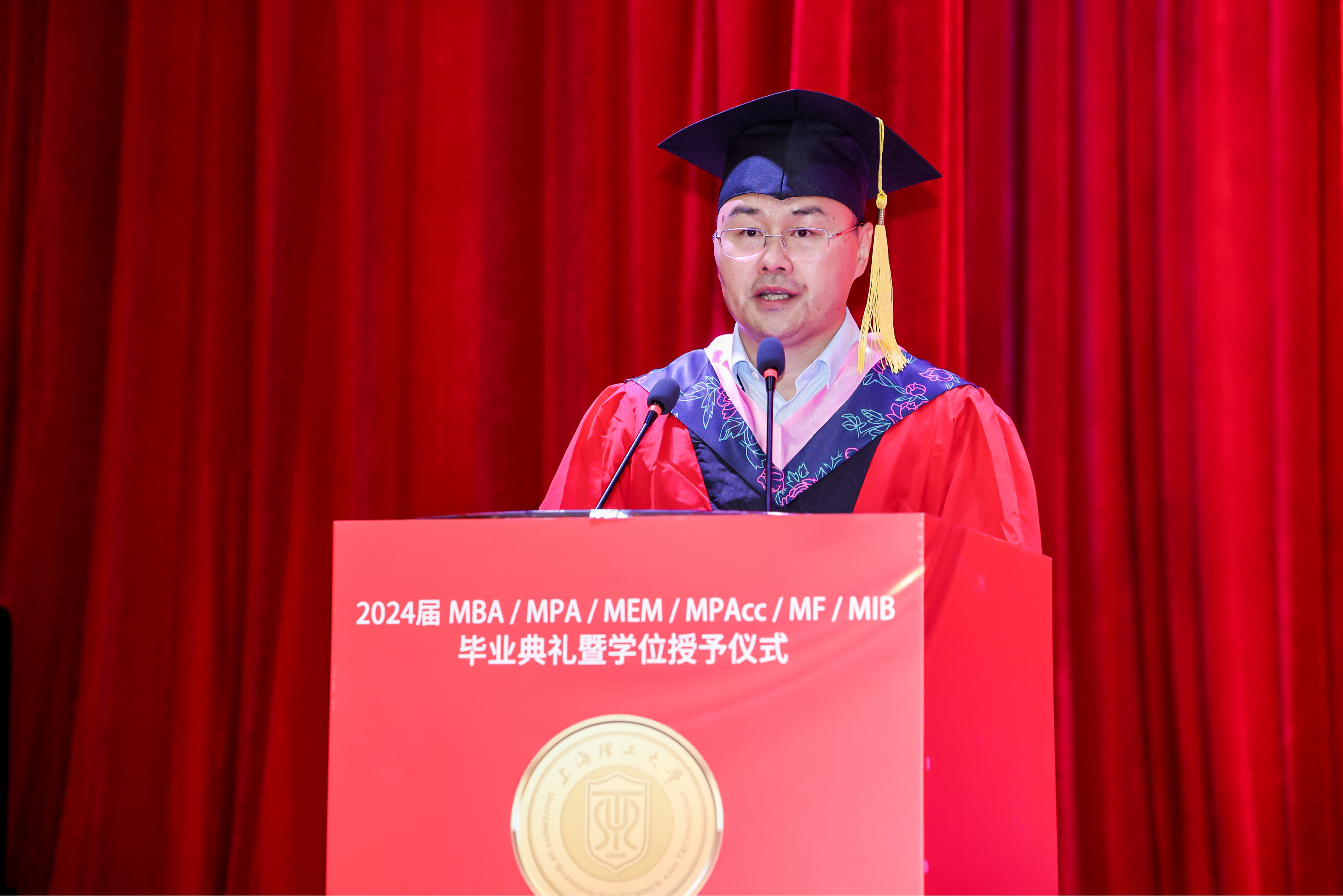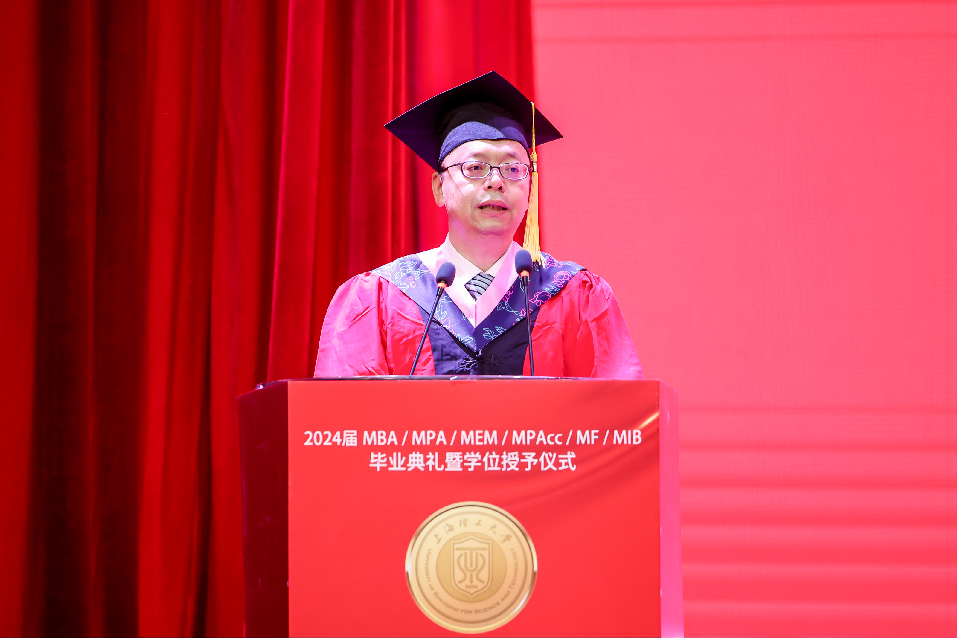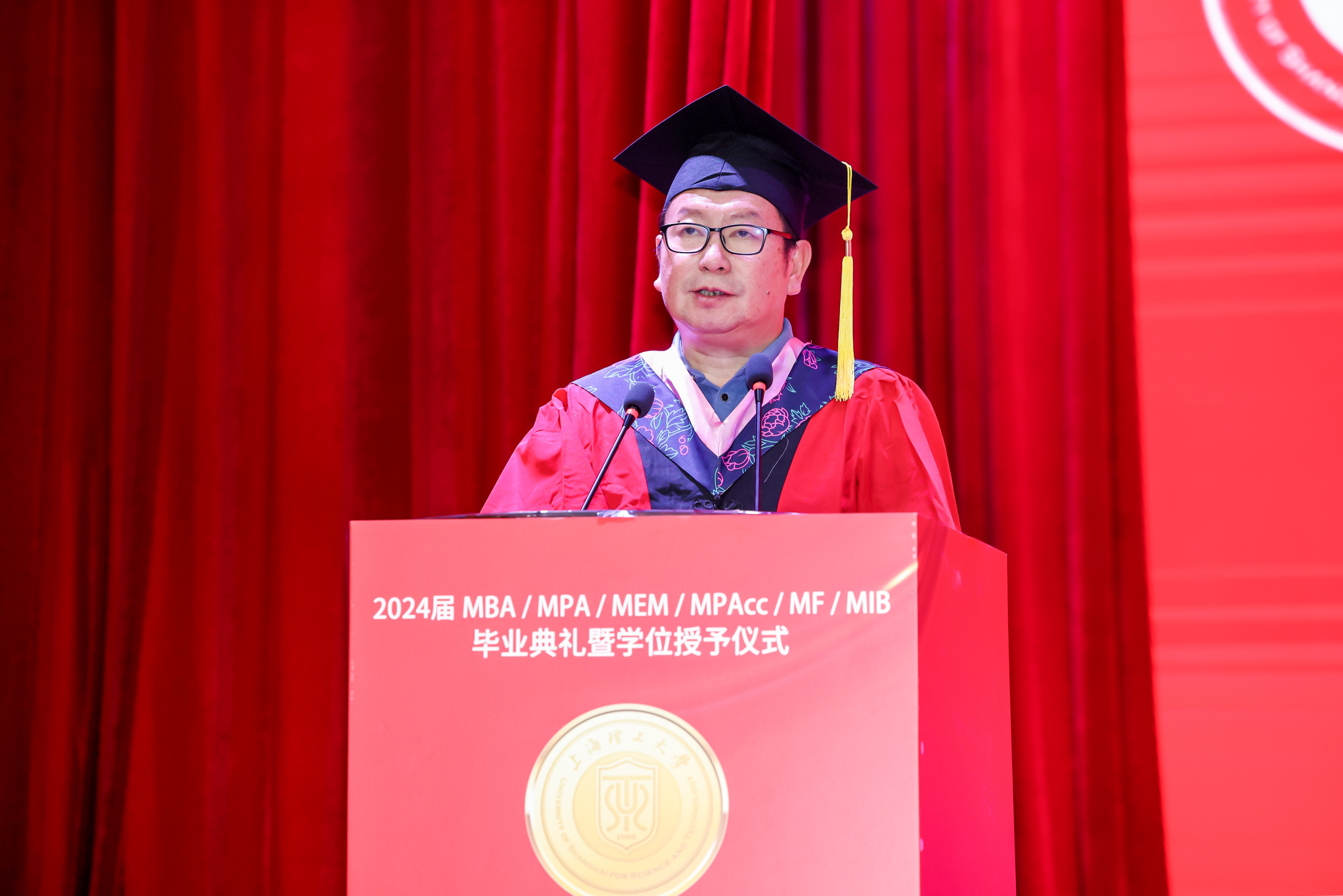雨后初霁逢盛夏,骊歌声起话别情。6月29日下午,上海理工大学2024届MBA、MPA、MEM、MPAcc、MF、MIB毕业典礼暨学位授予仪式在军工路516号大礼堂举行。400余名学子圆满完成学业获得硕士学位,以梦想为帆,驶向人生新航程。上海理工大学党委副书记、副校长盛春、研究生院常务副院长崔国民,管理学院院长、专业学位教育中心主任赵来军,管理学院党委书记马静波,管理学院副院长、专业学位教育中心副主任张峥,管理学院党委副书记蒲莹莹,MEM项目主任叶春明教授,MIB项目主任魏景赋教授及教师代表、校友代表、毕业生亲友代表等出席典礼,共同见证2024届MBA、MPA、MEM、MPAcc、MF、MIB毕业生的荣光时刻。
