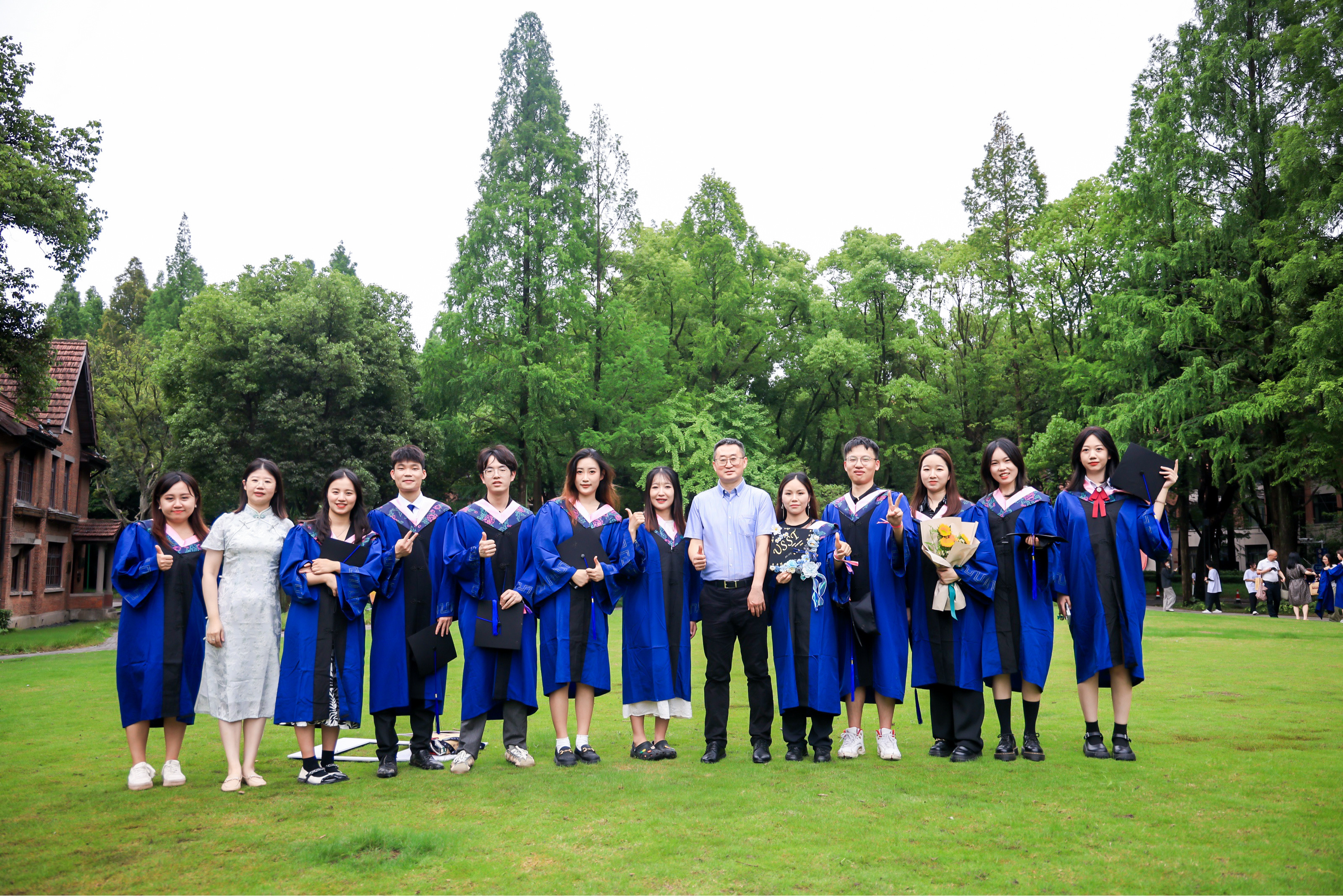 仪式结束,毕业生们与校领导、院领导、导师们一起拍摄合影留念。