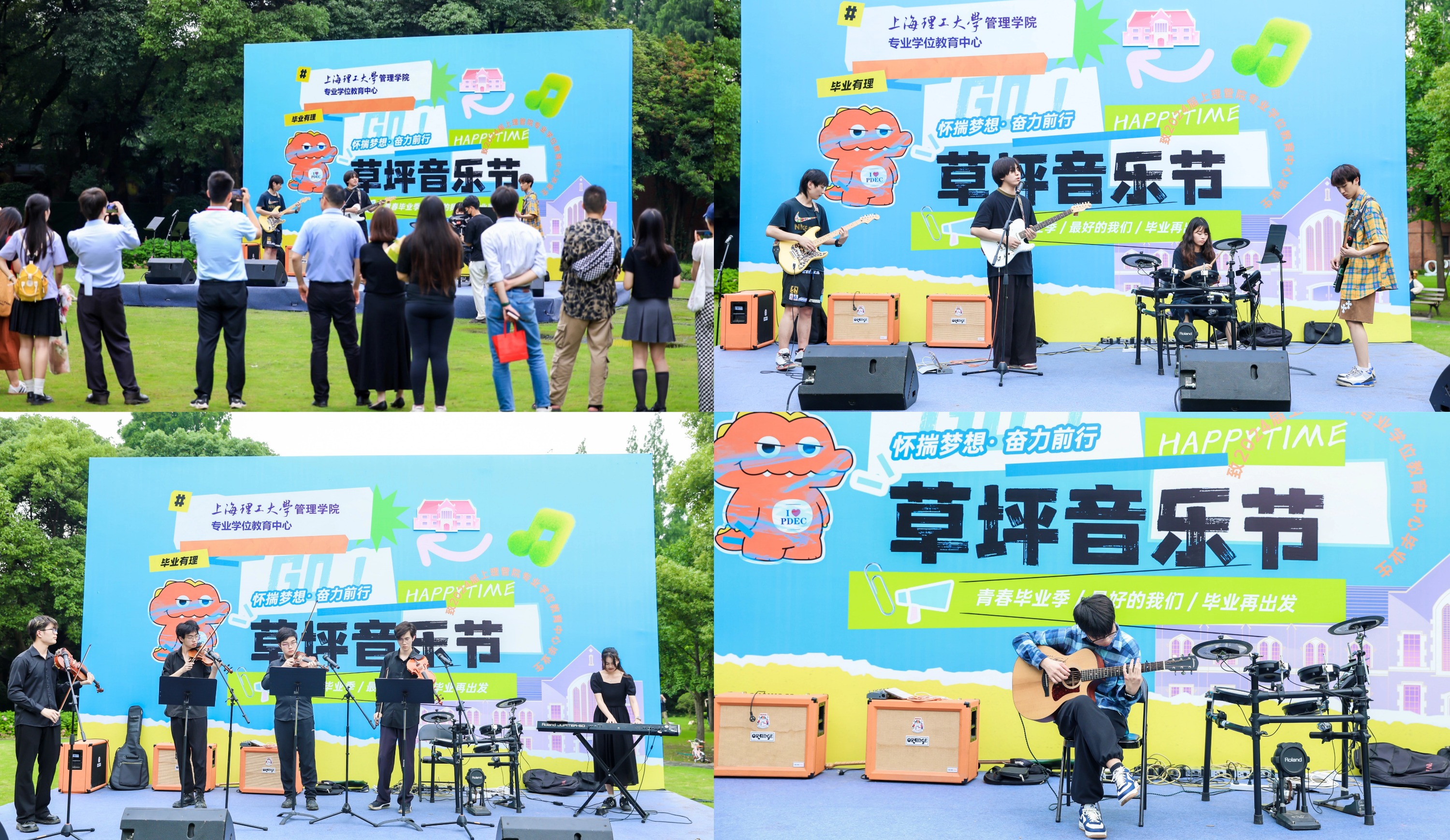 典礼结束后,在夏风吹拂中,管理学院专业学位教育中心特意为毕业生们筹办的草坪音乐节在沪江文化园草坪上拉开序幕,沪江管弦乐团、上理吉他社、光锥乐队等依次上台给毕业生们带来了充满夏日气息的毕业曲目,祝福2024届毕业生们一路繁花,努力开创出一片属于自己的璀璨天地,也为大家在上理的校园生活画上了完美句号。怀揣梦想,奋力前行。他们的求学之旅虽已暂告段落,更精彩的篇章亦即将开启。
