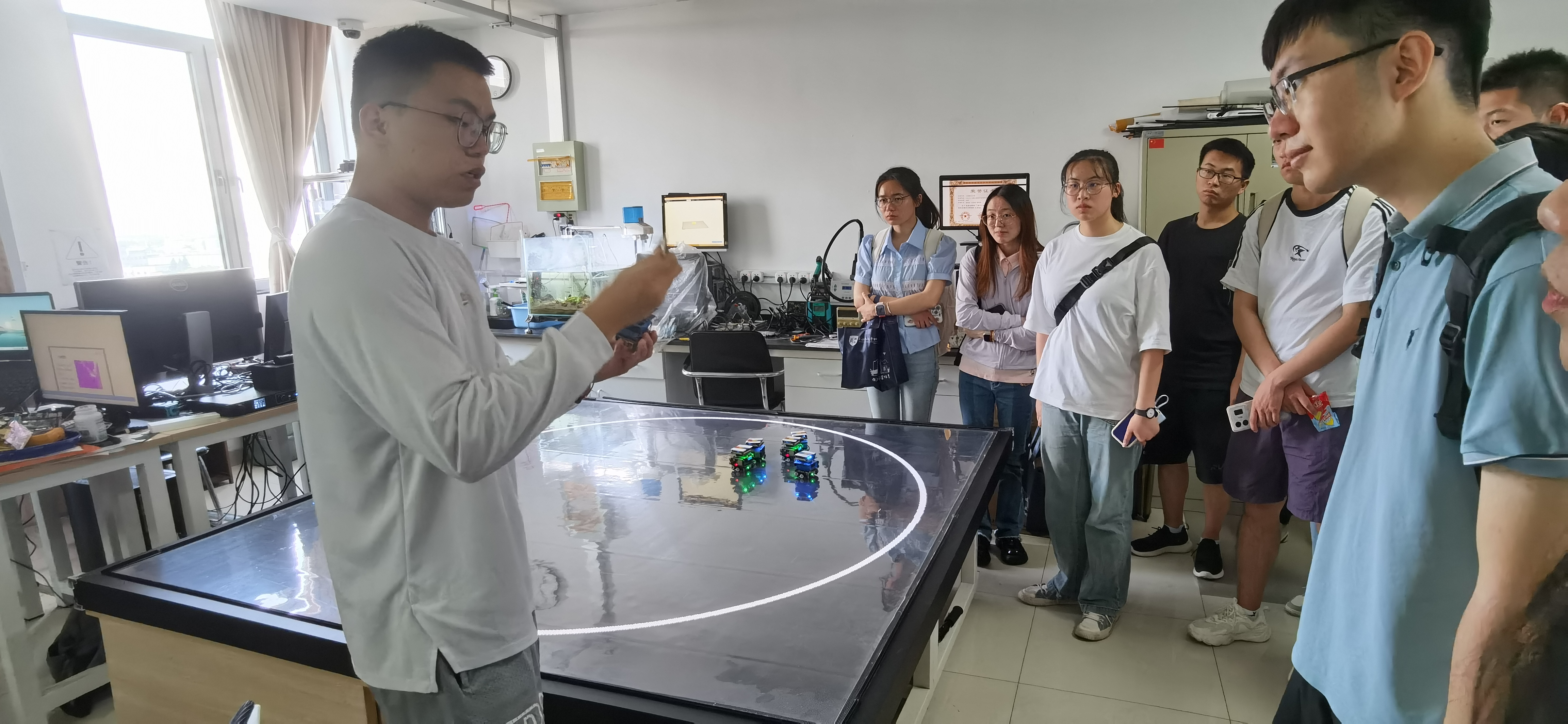 在夏令营活动的下半场,营员们参观了智慧应急管理实验室、机器人集群智能与复杂系统控制实验室,智慧应急管理实验室秘书长房志明教授、机器人集群智能与复杂系统控制实验室在读研究生何海鹏、袁永宏等为参观的学生做相关讲解,并进行了面对面的交流与讨论。