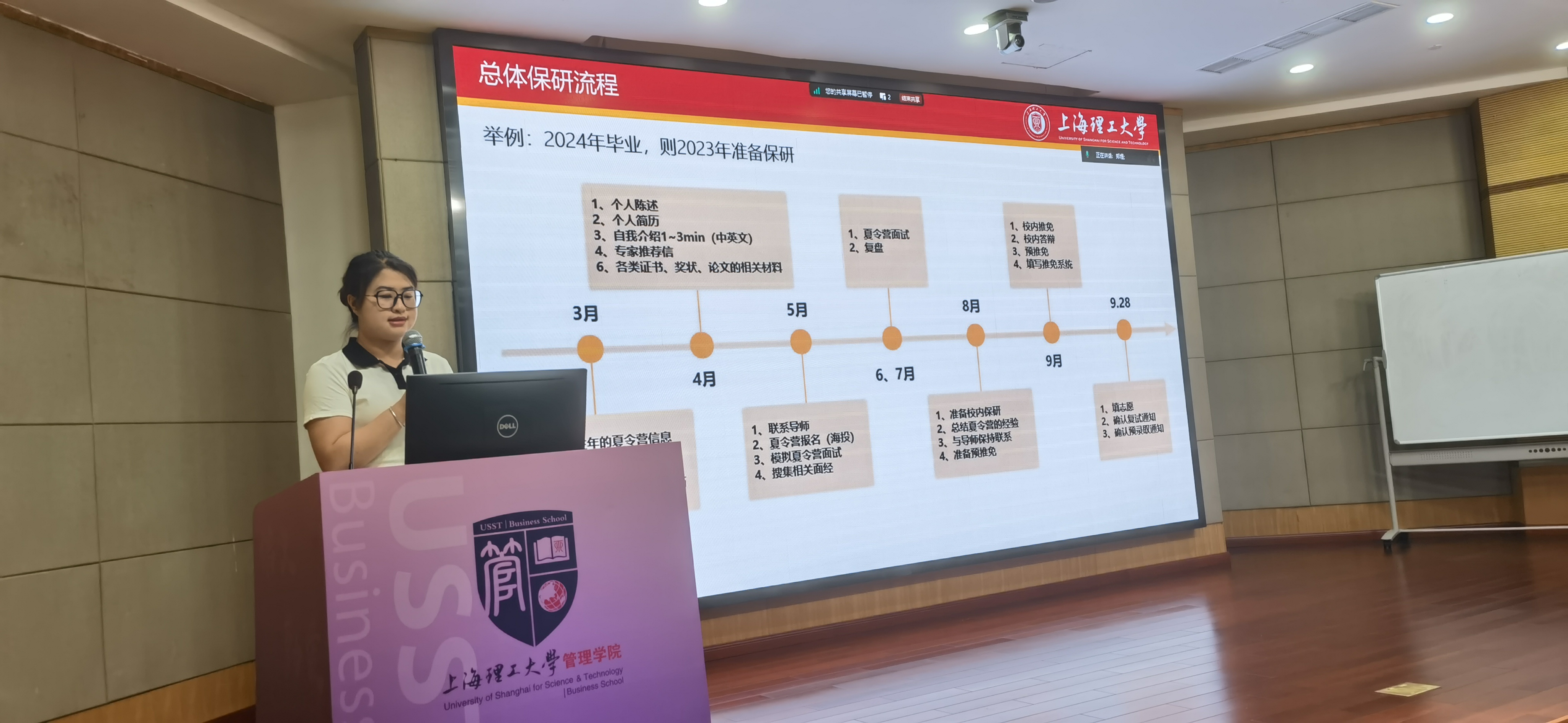 在优秀在读研究生经验分享环节,学生代表杨璐祯和付馨懿详细介绍了考研和保研的准备经验。