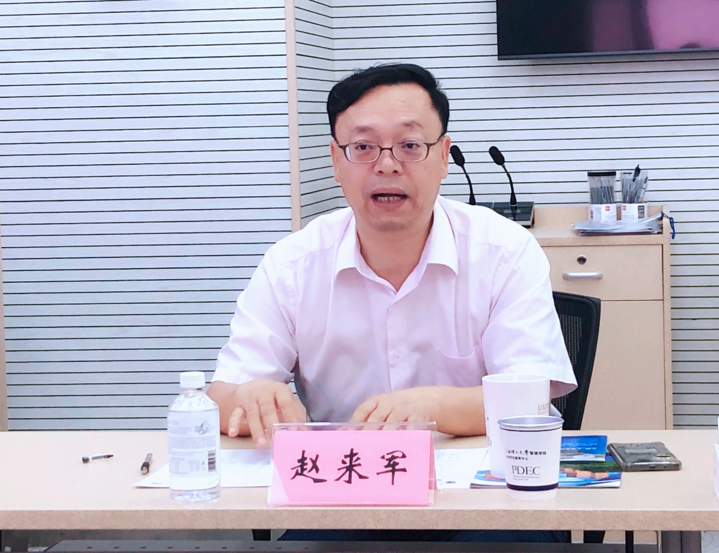赵来军代表学院对中国-上海合作组织经贸学院的来访表示热烈欢迎,并回顾了学院与“上合组织”国家高校的合作历史,并从国际交流、EDP项目发展等方面介绍了管理学院的基本情况。