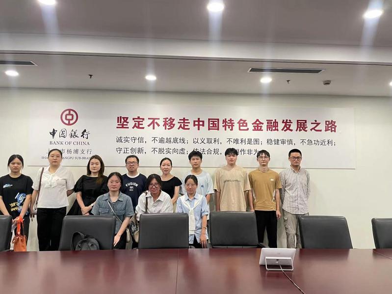 自7月10日开始,金融专业的20名同学开始了2024年“中银慧谷”暑期实习。此次实习分为两批,每批10名同学,每批实习期为一个月,7月10日至8月10日是第一批,由金融系支部书记张婷带队,8月13日至9月13日是第二批,由金融系教师苏孝珊带队。实习同学分别在中国银行杨浦支行的个人金融数字部、公司金融部、行政事业机构部、运营中心、风险合规和内控运营部等部门实习。