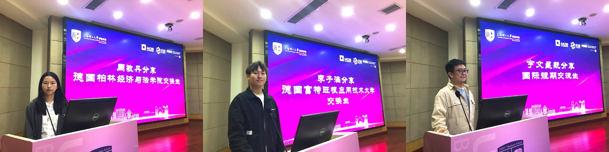 德国柏林经济与法学院交换生周敏丹、德国富特旺根应用技术大学交换生李子涵,以及国际短期项目交流生宇文星航讲述了他们在海外交流期间的学习探索、生活点滴、文化沉浸与体验之旅,分享了这段经历所带来的宝贵收获与深刻感悟。