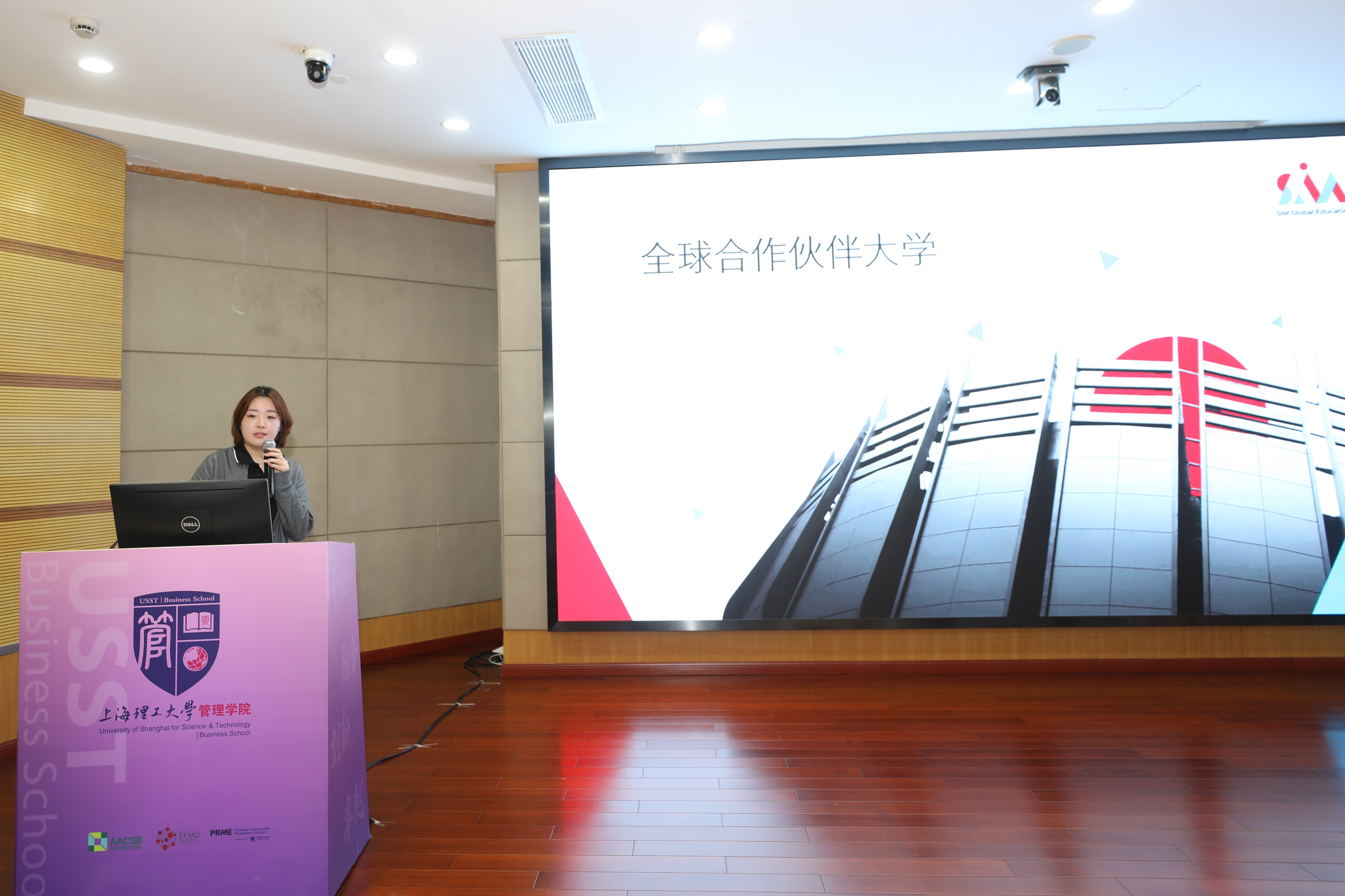 新加坡管理学院华东区合作项目经理张婷婷介绍了新加坡管理学院的具体概况并具体说明了与我校签署的合作协议中的具体招生条件、学业安排、毕业要求等。新西兰坎特伯雷大学上海项目协调办公室项目负责人胡伟平对坎特伯雷大学的概况、短期访学规划进行了详细介绍。