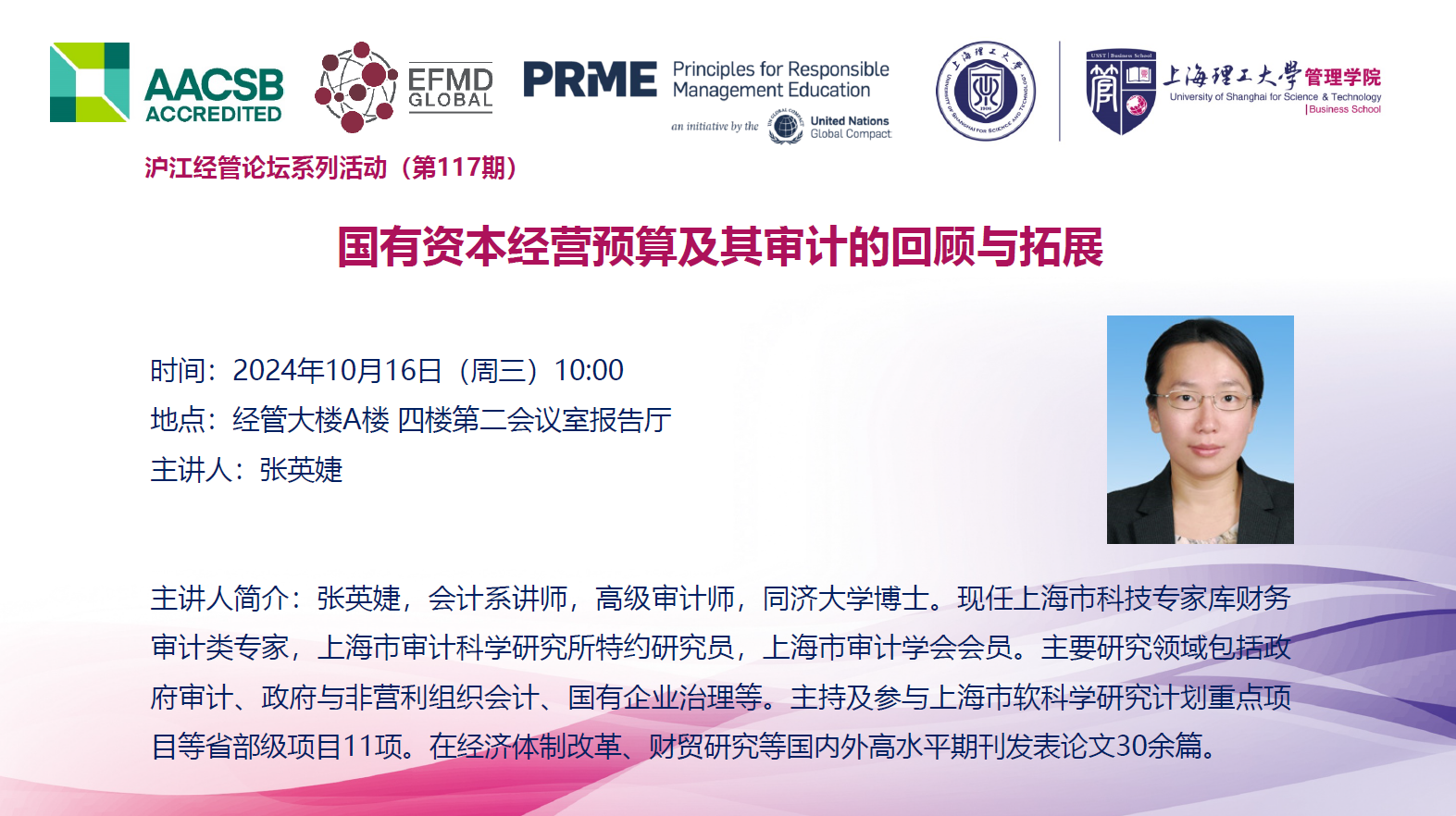 沪江经管论坛系列活动(第117期):国有资本经营预算及其审计的回顾与拓展