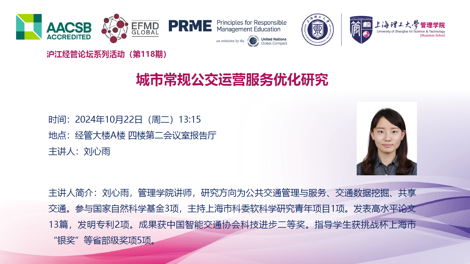 沪江经管论坛系列活动(第118期):城市常规公交运营服务优化研究