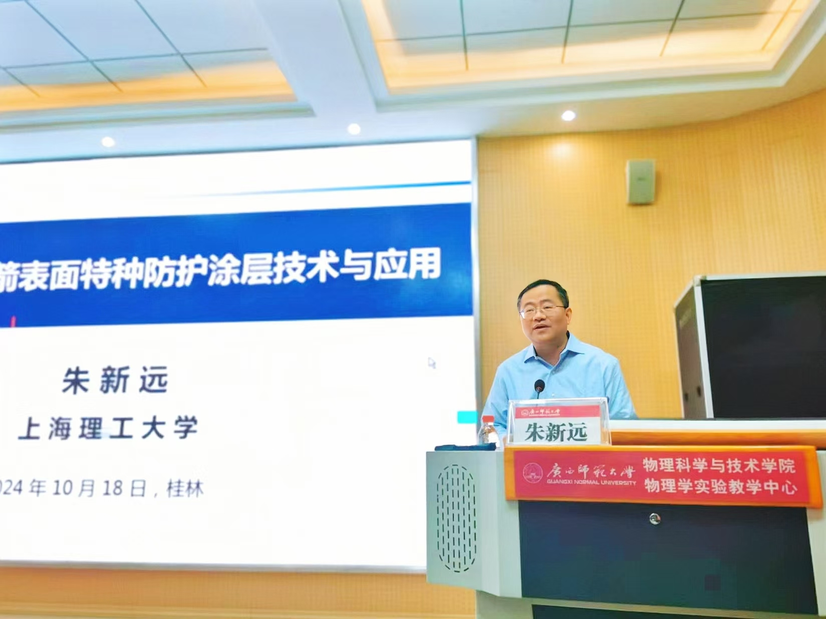 18日上午,朱新远应广西师范大学邀请,作题为“新一代运载火箭表面特种防护涂层技术与应用”的学术报告。在报告中,他介绍了新一代运载火箭表面特种防护涂层技术的最新研究进展,并指出该技术已在国际上率先实现了新一代火箭表面防护层的高可靠性、高效率及低成本全喷涂制造,为我国航天事业的发展提供了有力支持。