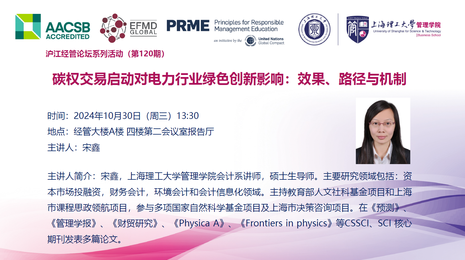 沪江经管论坛系列活动(第120期):碳权交易启动对电力行业绿色创新影响:效果、路径与机制