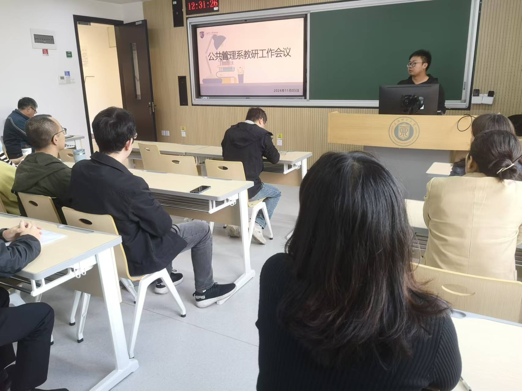 11月5日下午,公共管理系于四教300教室召开2024-2025学年第一学期期中教研工作会议。公共管理系全体教师参加会议,围绕2025届毕业论文的启动工作进行了深入交流与讨论。会议由系副主任范伟主持。