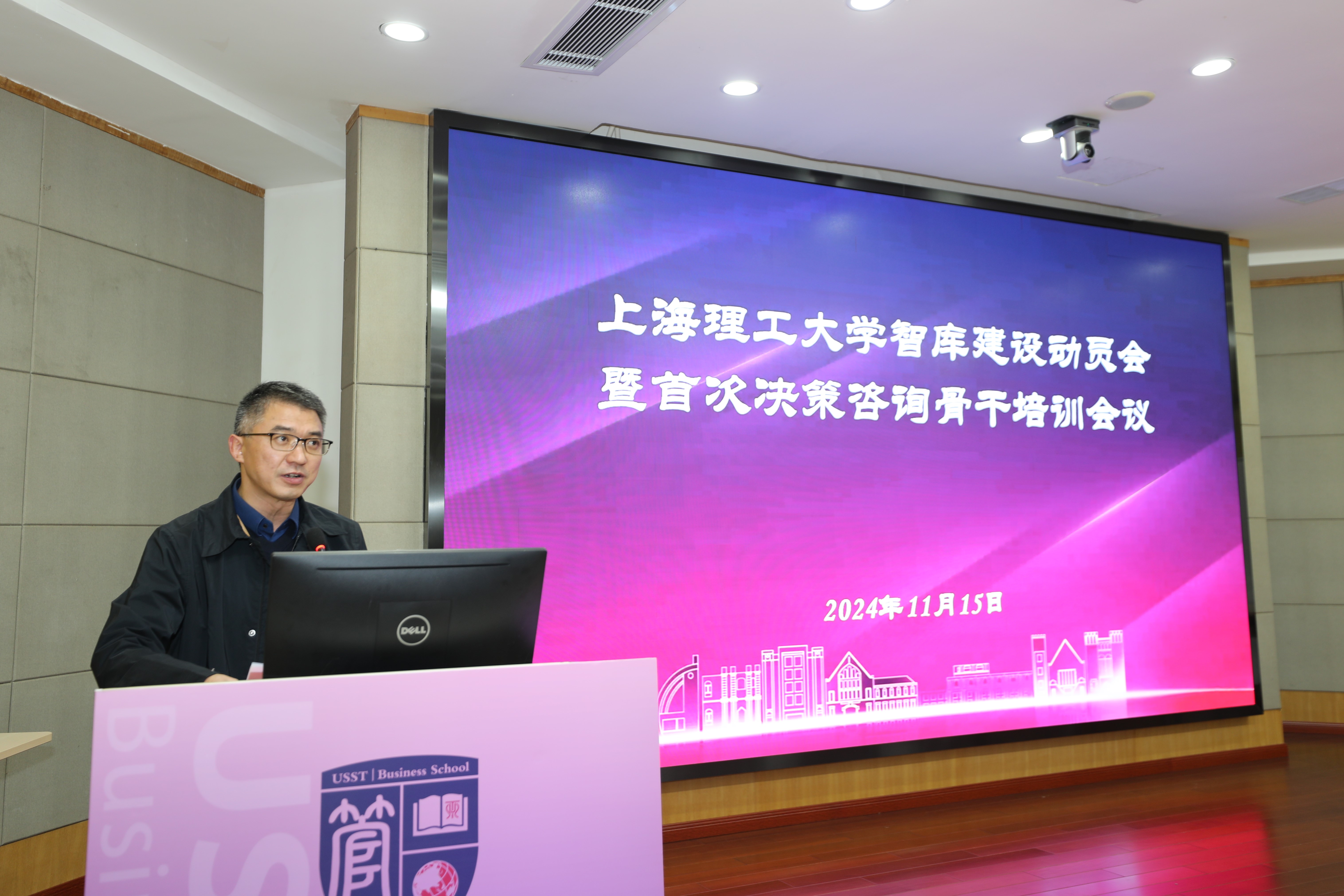 11月15日,上海理工大学智库建设动员会暨首次决策咨询骨干培训会议在管理学院召开。本次会议由上海城市安全运行与应急治理协同创新中心(上海市高校智库)、上海市人民政府决策咨询上海理工大学研究基地、上海理工大学智慧应急管理学院联合举办。党委宣传部部长李志清、先进技术研究院院长黄烜、管理学院院长赵来军、管理学院党委书记马静波,以及全校近百名决策咨询骨干教师共同参会。会议由马静波主持。