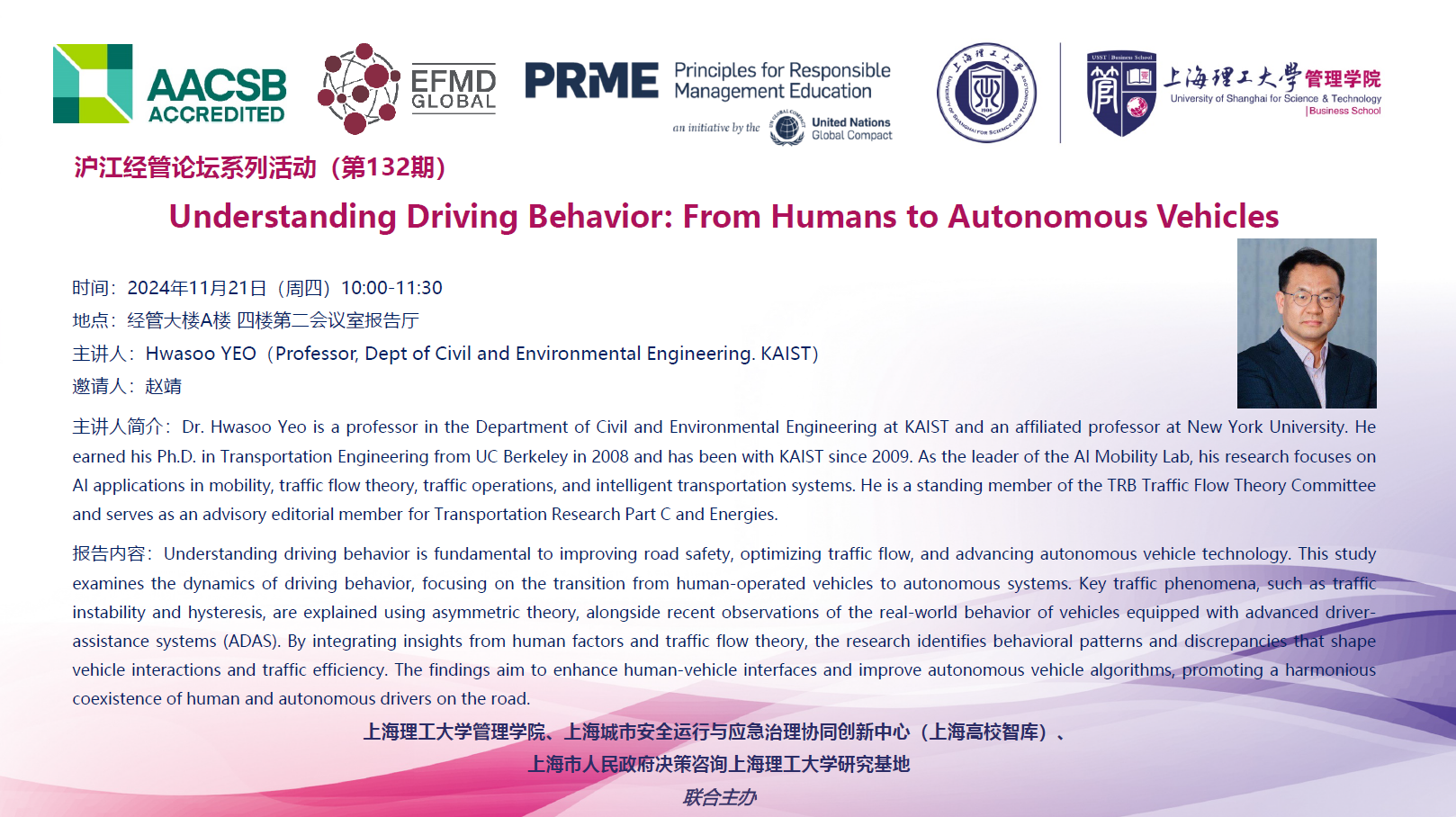 沪江经管论坛系列活动(第132期):Understanding Driving Behavior: From Humans to Autonomous Vehicles