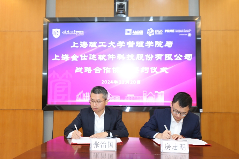 11月20日上午,管理学院与上海金仕达软件科技股份有限公司战略合作协议签约仪式在经管大楼A楼610会议室举行。