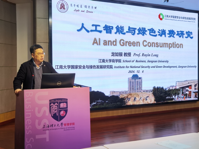 12月6日,国际经济与贸易系邀请江南大学商学院龙如银教授作题为“人工智能与绿色消费研究” 的学术前沿讲座。本次讲座由国贸系主任秦炳涛主持,相关学科师生参加。
