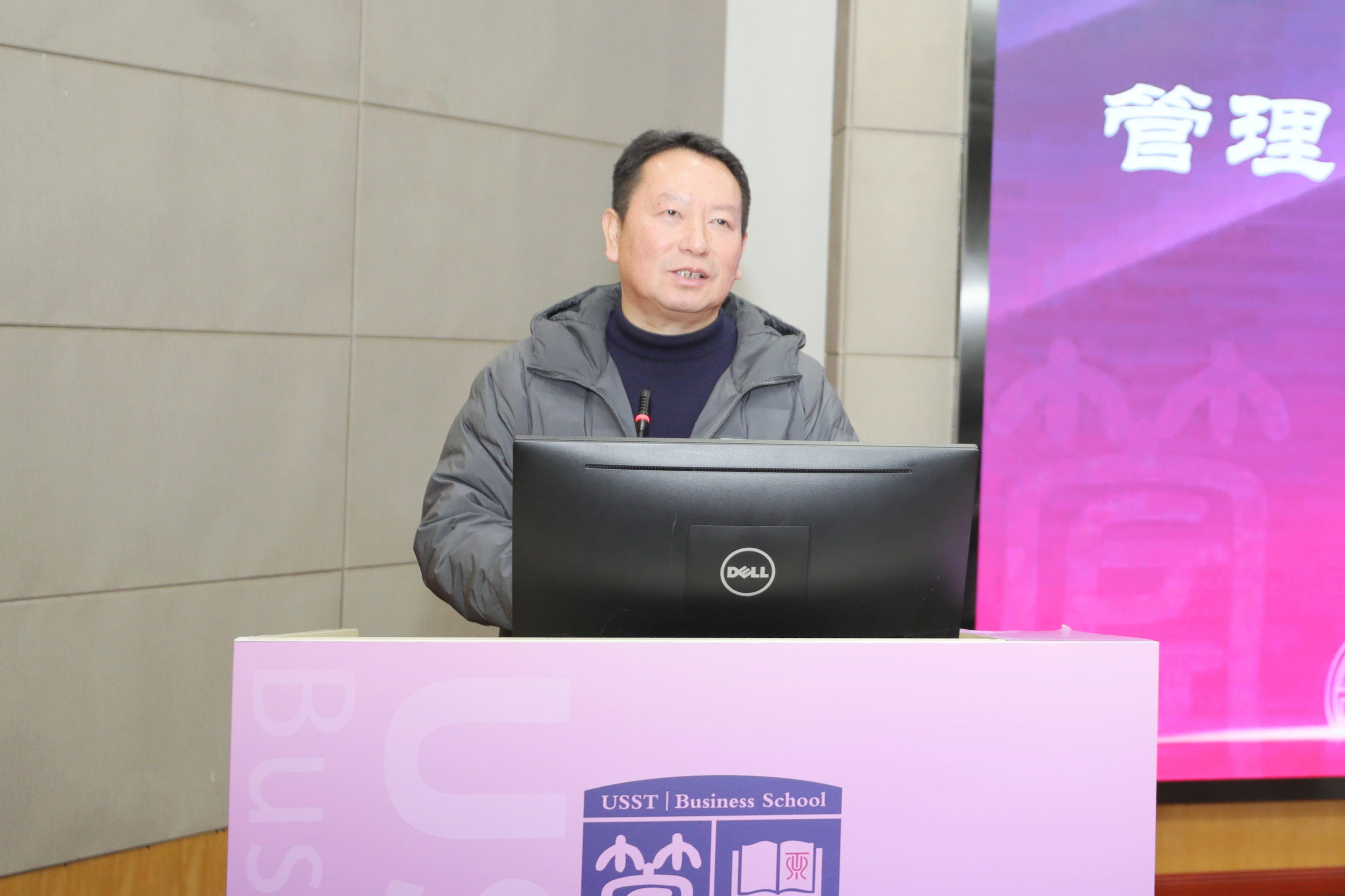 管理学院院长赵来军对学院本科专业建设情况进行了总结。他表示,管理学院将持续加强本科专业建设,不断提升教学质量和办学水平,感谢学校和教务处领导对学院本科教学工作给予的认可和支持,希望未来学校给予更多指导和帮助。