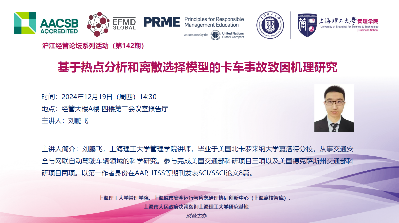 沪江经管论坛系列活动(第142期):基于热点分析和离散选择模型的卡车事故致因机理研究