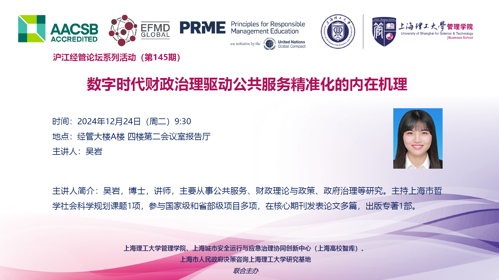 沪江经管论坛系列活动(第145期):数字时代财政治理驱动公共服务精准化的内在机理