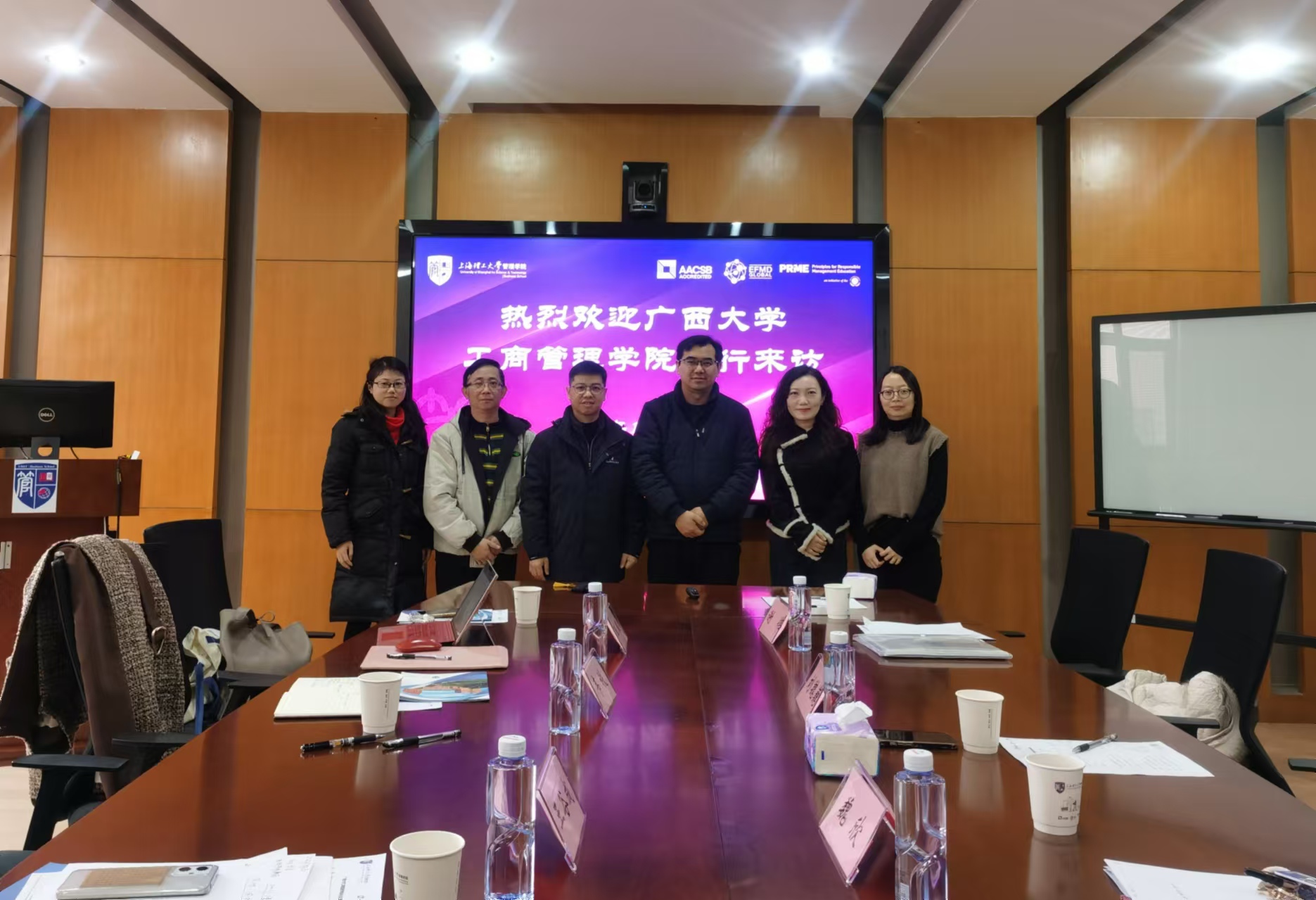 12月23日上午,广西大学工商管理学院院长助理韦铁,院长助理、认证办公室主任王玻等一行来访。管理学院国际化院务助理刘魏巍,以及国际化建设办公室全体成员共同参加了会谈。