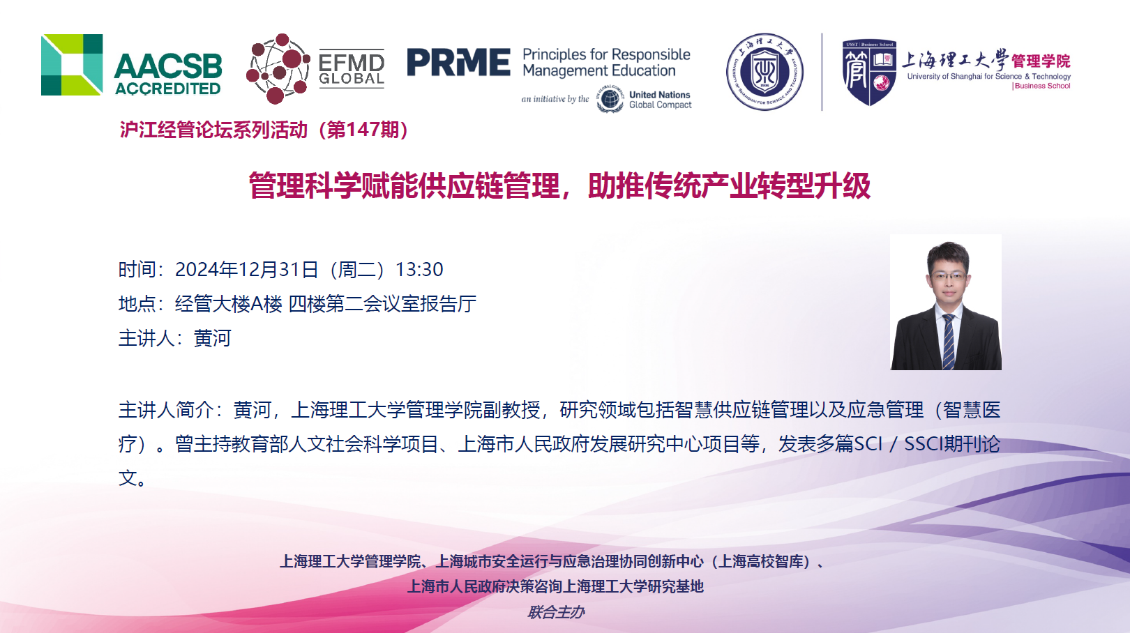 沪江经管论坛系列活动(第147期):管理科学赋能供应链管理,助推传统产业转型升级