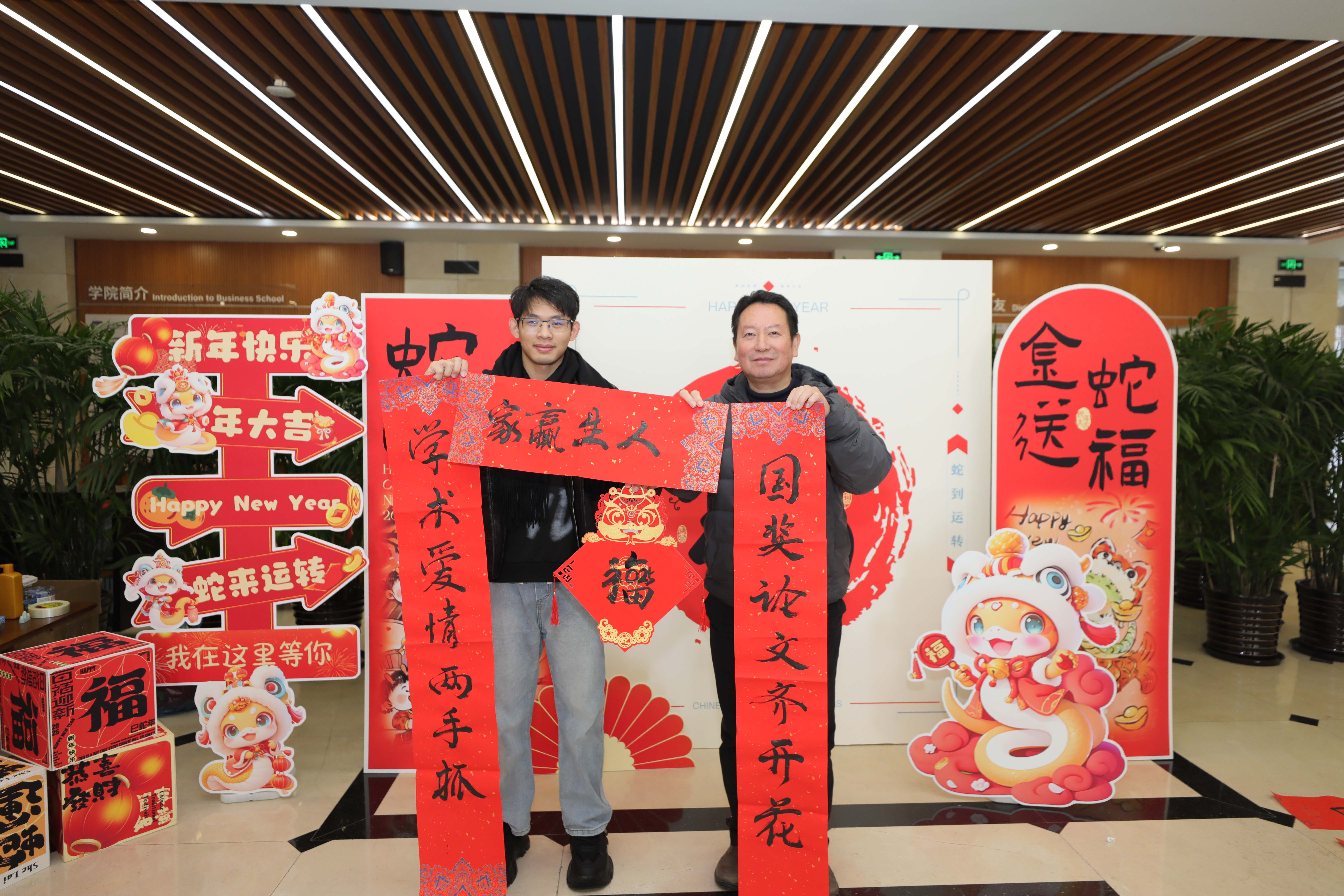 活动现场气氛热烈,广大师生积极参与,充分展现了管理学院师生对传统文化的热爱与传承。参与活动的师生们纷纷挥毫泼墨,创作出众多内容积极向上、洋溢喜庆祥和氛围的春联作品。这些作品不仅展现了管理学院师生的精神风貌,还巧妙融合了传统与现代元素,既保留了传统文化的精髓,又增添了时代特色,实现了文化创新与传承的和谐统一。