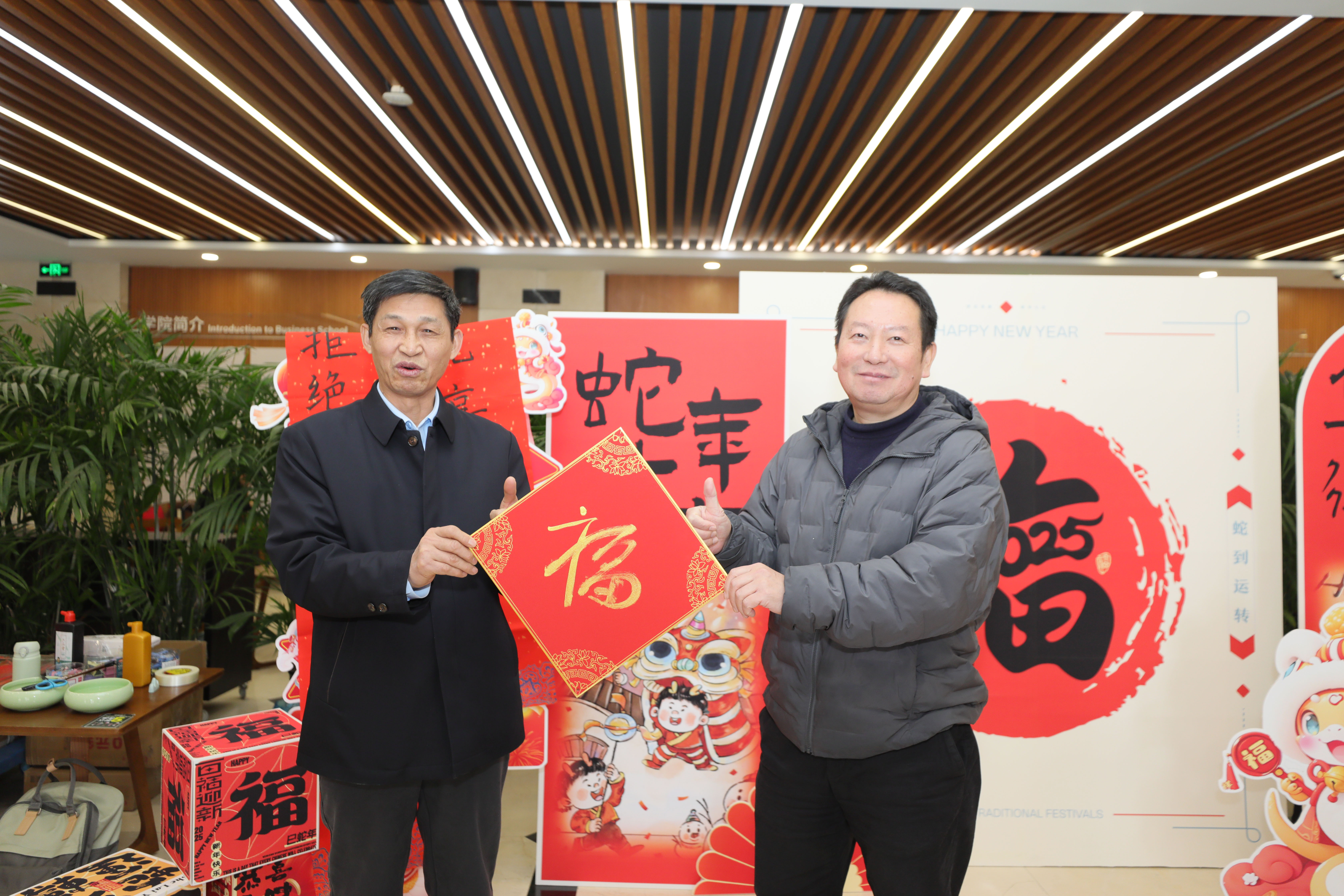 12月30日,管理学院在经管大楼A楼一楼大厅举办“迎元旦 庆新春”师生春联创作书写活动。本次活动旨在弘扬中华优秀传统文化,营造浓厚的新春节日氛围,激发学院师生的创作热情与文化自信,促进师生间互动交流,推动校园文化建设,营造良好育人环境。