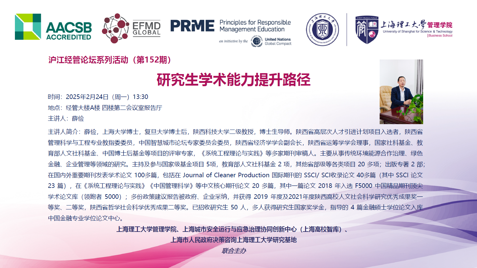 沪江经管论坛系列活动(第152期):研究生学术能力提升路径