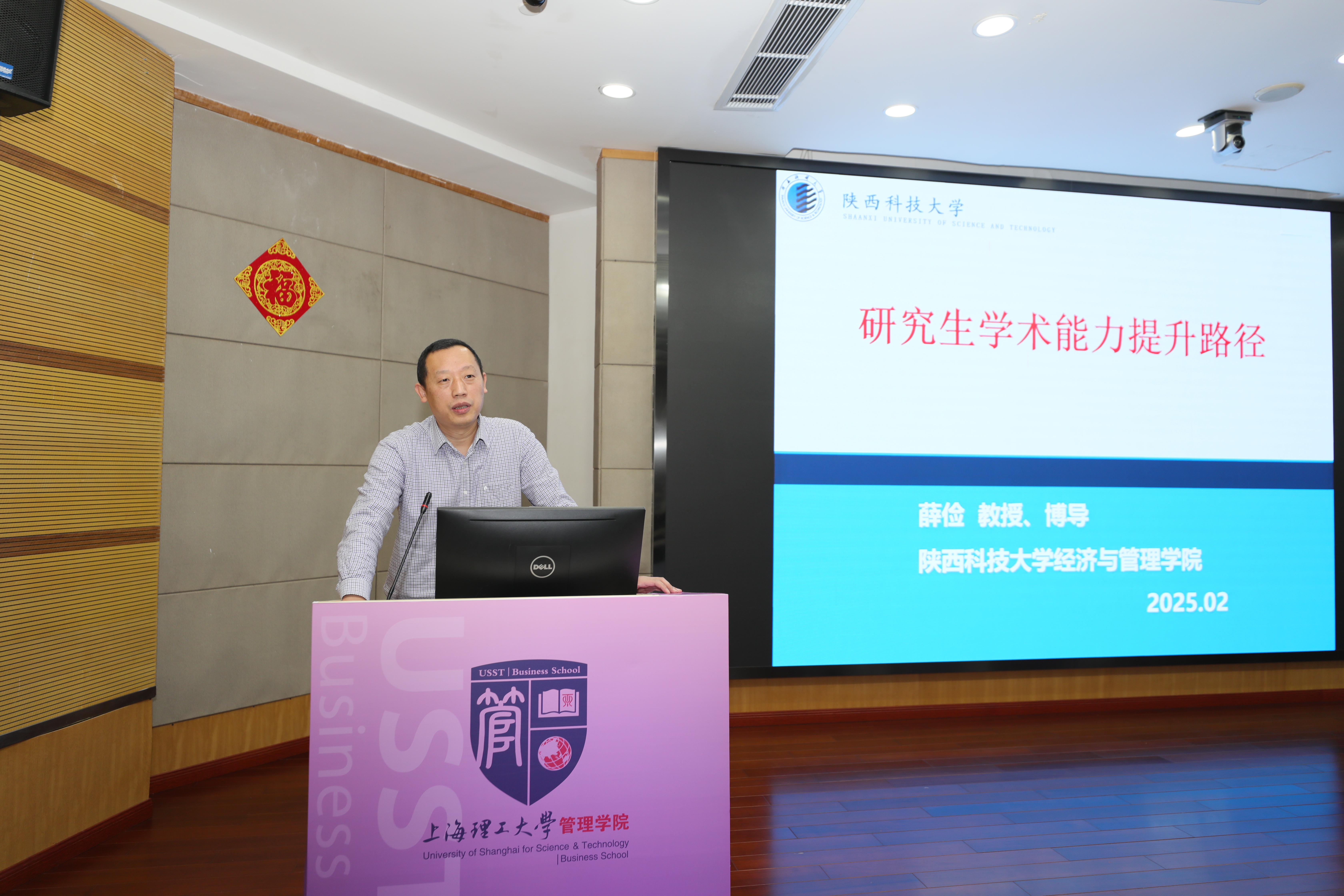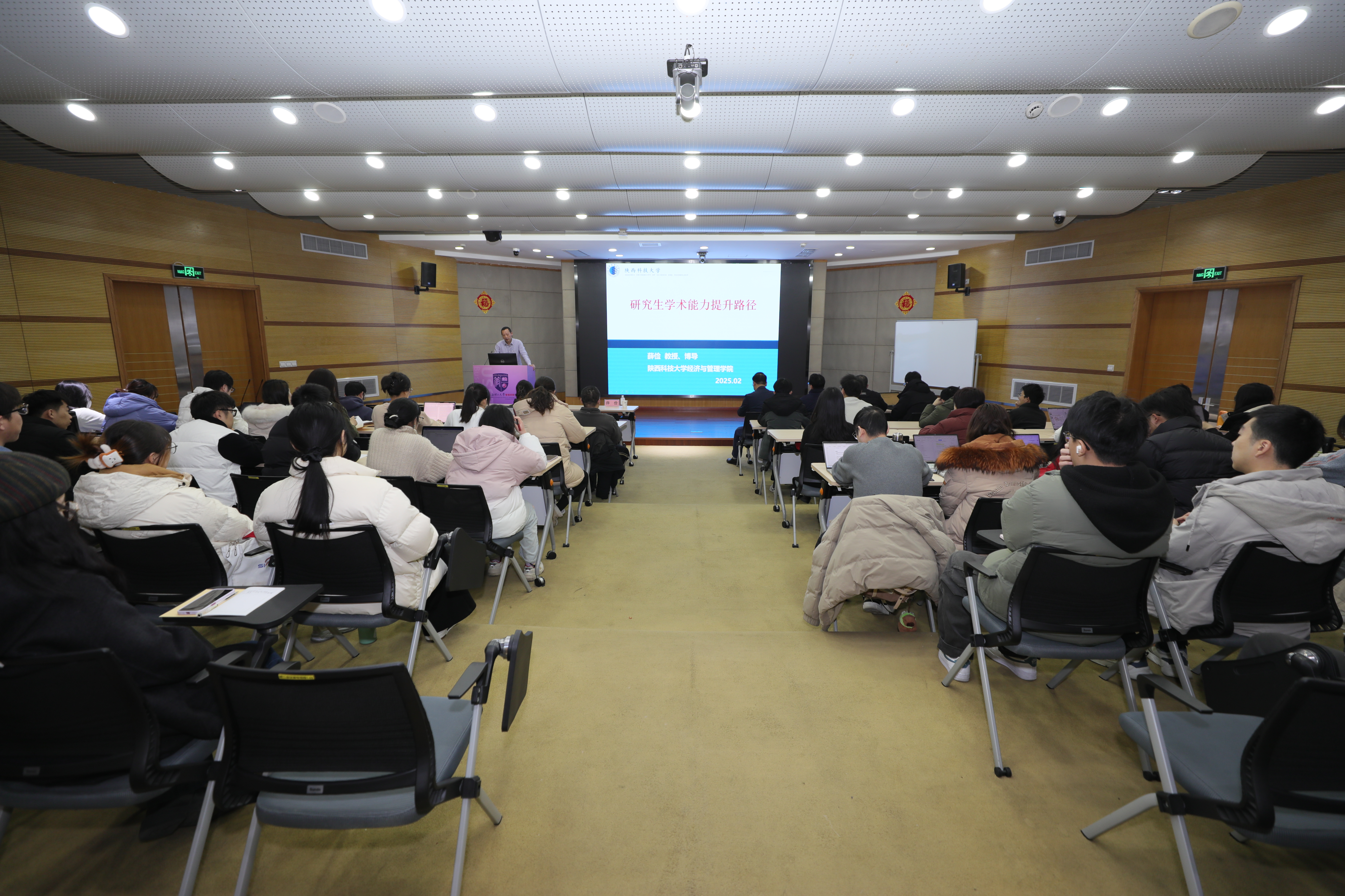 2月24日,陕西科技大学经济与管理学院副院长薛俭为学院师生作题为“研究生学术能力提升路径”的学术报告。报告由管理学院院长赵来军主持,院务助理刘魏巍及管理学院近百名师生参加报告会。
