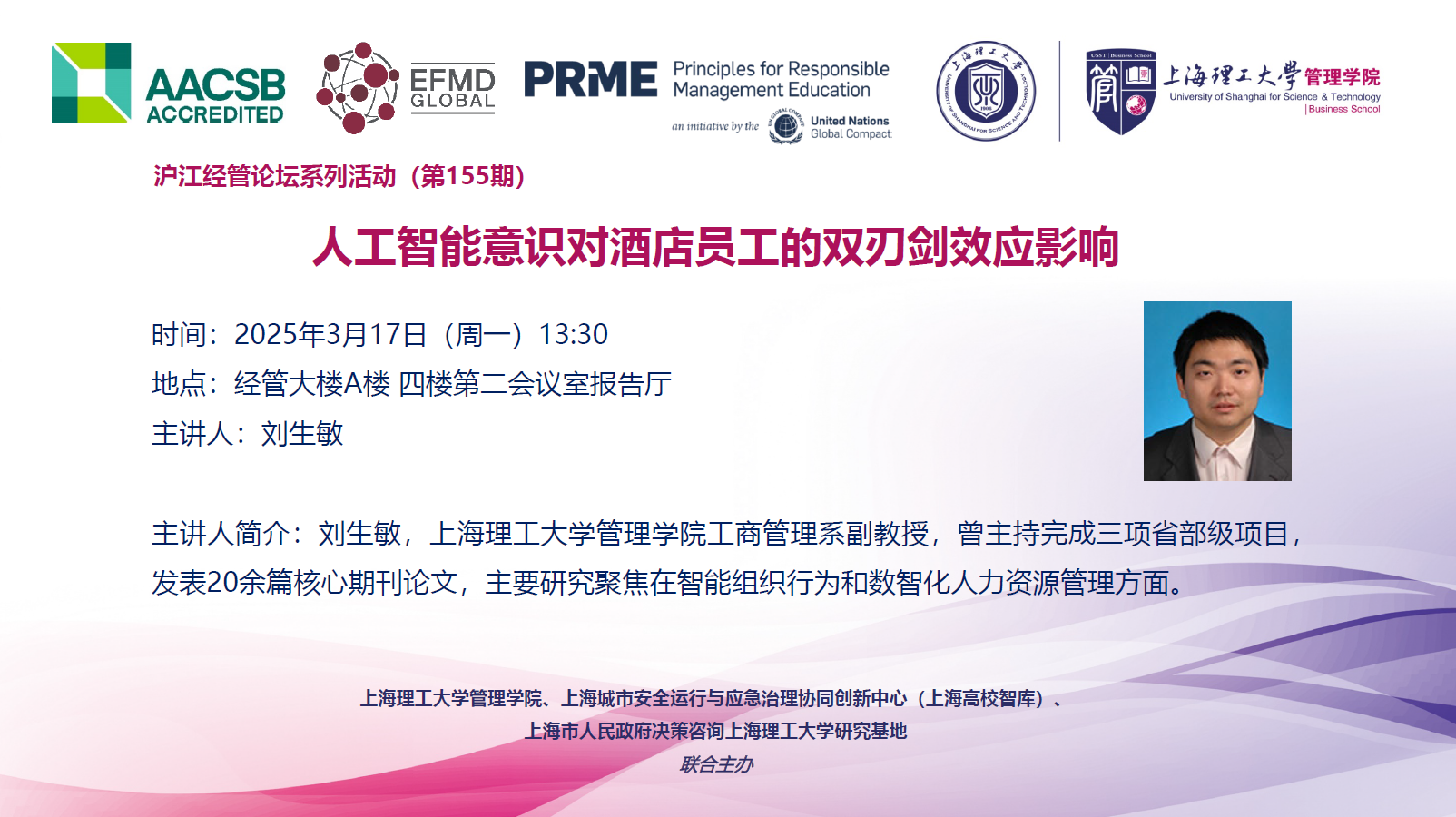 沪江经管论坛系列活动(第155期):人工智能意识对酒店员工的双刃剑效应影响