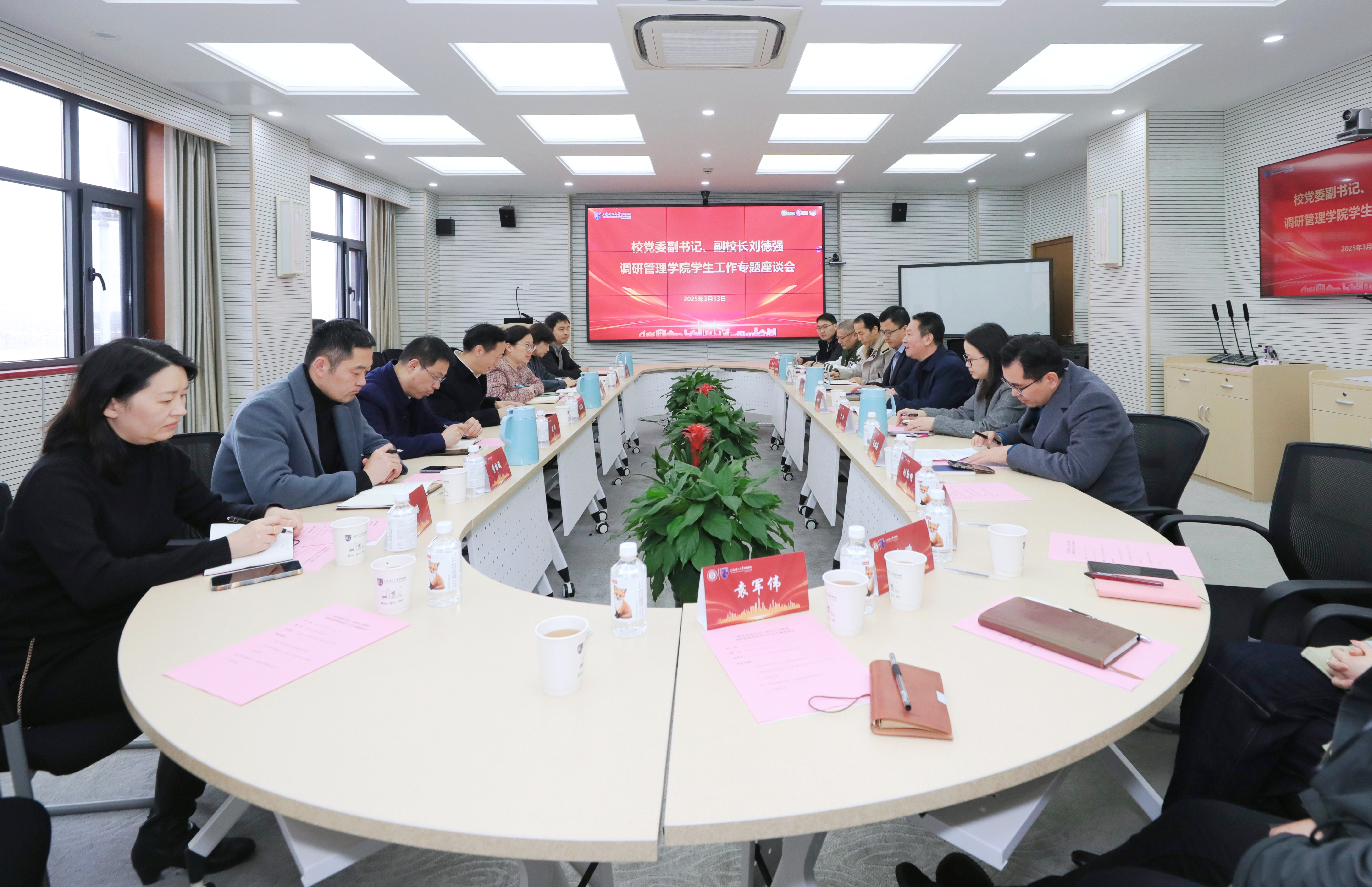 为深入贯彻落实立德树人根本任务,进一步推动学生工作提质增效,提升教育服务质量,3月13日下午,校党委副书记、副校长刘德强率队,研究生工作部副部长、副院长王张琦,学生工作部(处)副部(处)长刘伟、冯磊、曹桂馥等一行莅临管理学院,就学生工作展开深入调研。学院党政班子,系主任代表以及全体专兼职辅导员共同参加了此次座谈会。会议由学院党委书记马静波主持。
