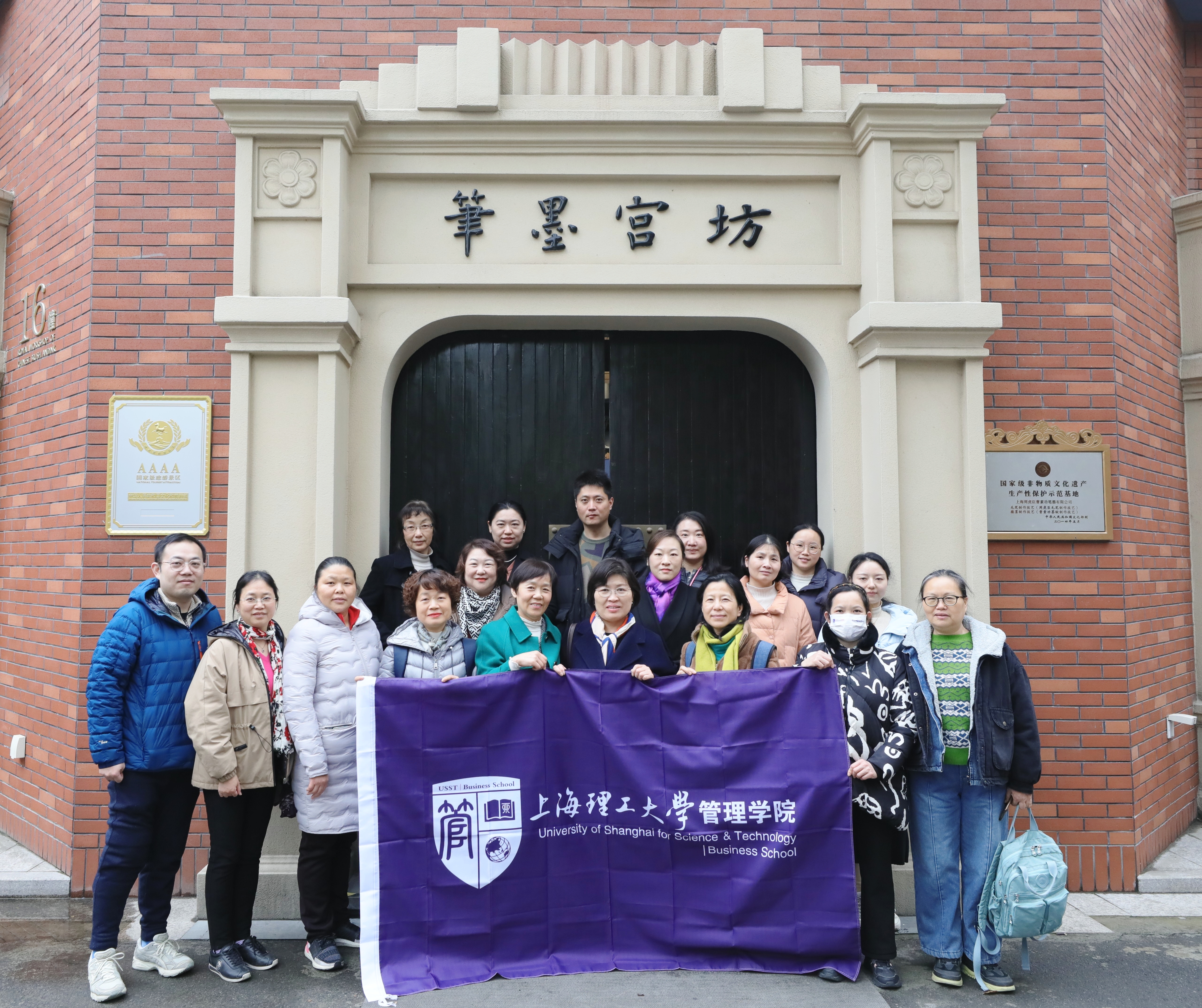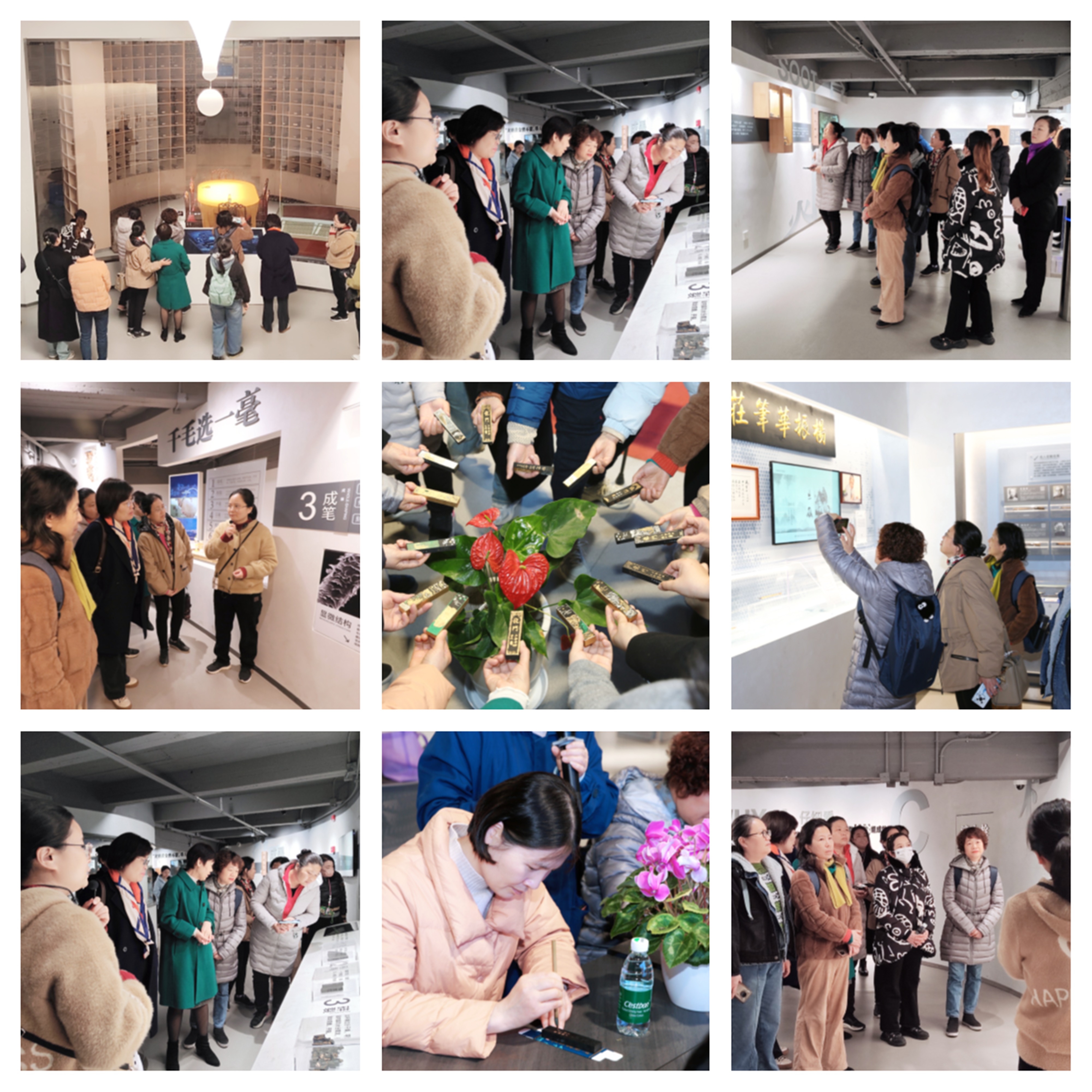 2025年3月14日,20位管理学院女教师走进合生茶岸文创园,参加在这里举办的“美丽心灵,笔墨留香”——笔墨宫坊参观及体验活动。在讲解员的带领下,大家参观了“曹素功制墨”和“周虎臣制笔”两项国家级非遗技艺,近距离感受传统工艺的魅力。参观结束后,大家体验了墨锭描金的过程,用创意和技巧完成了一锭锭“专属墨”作品。