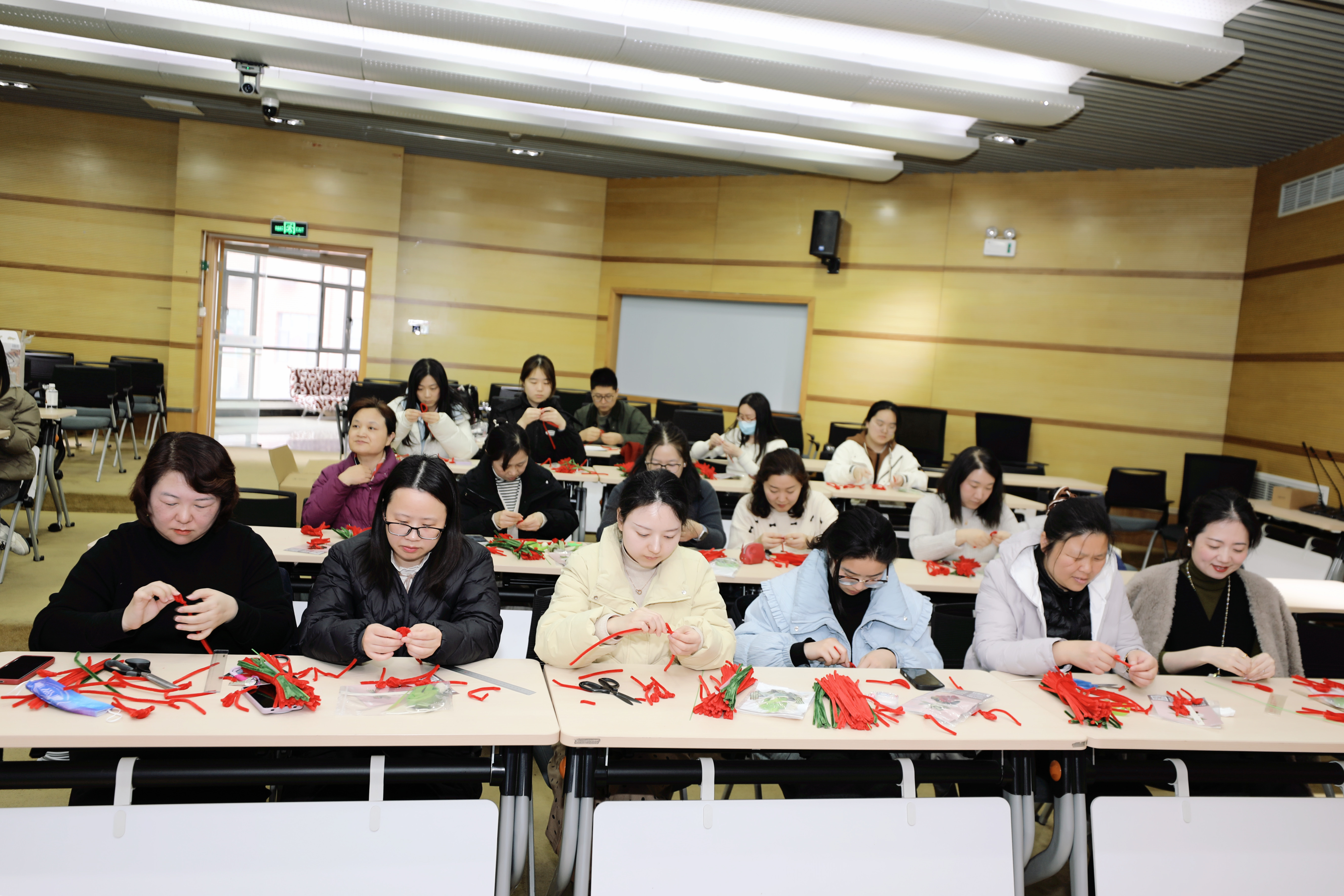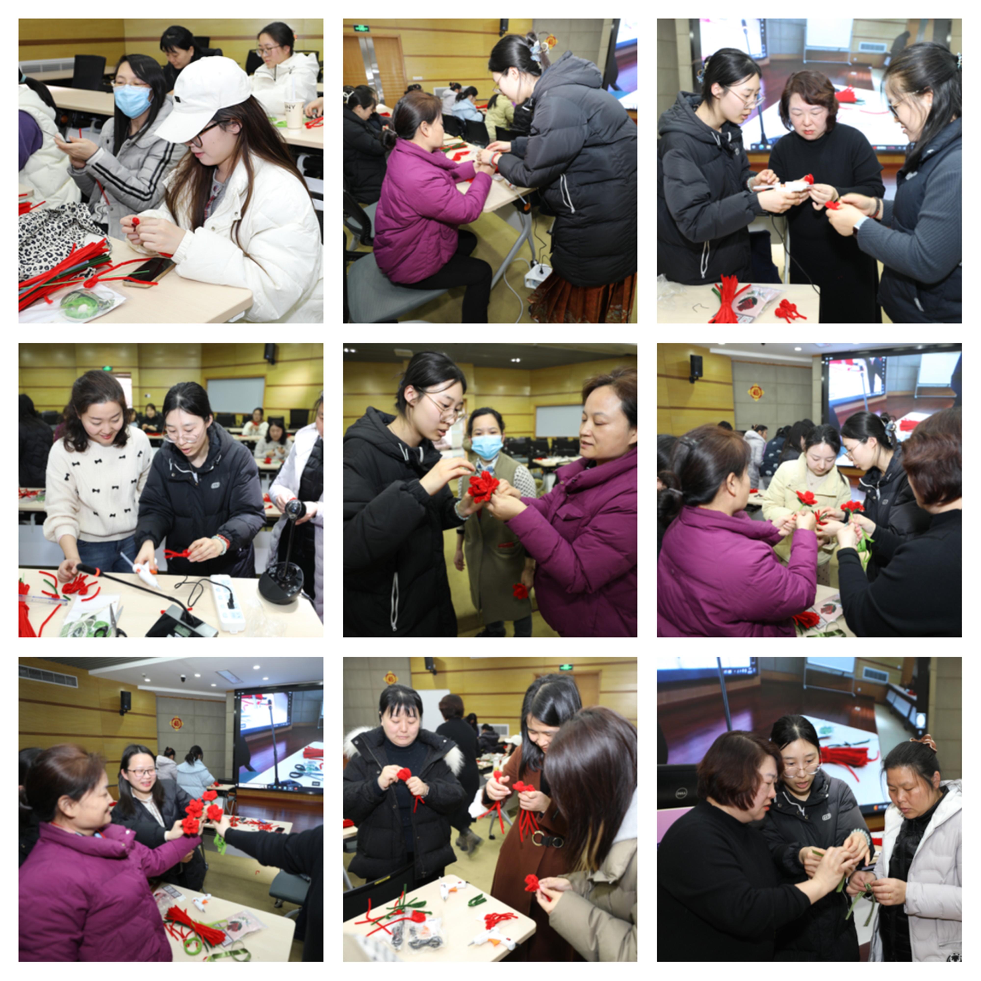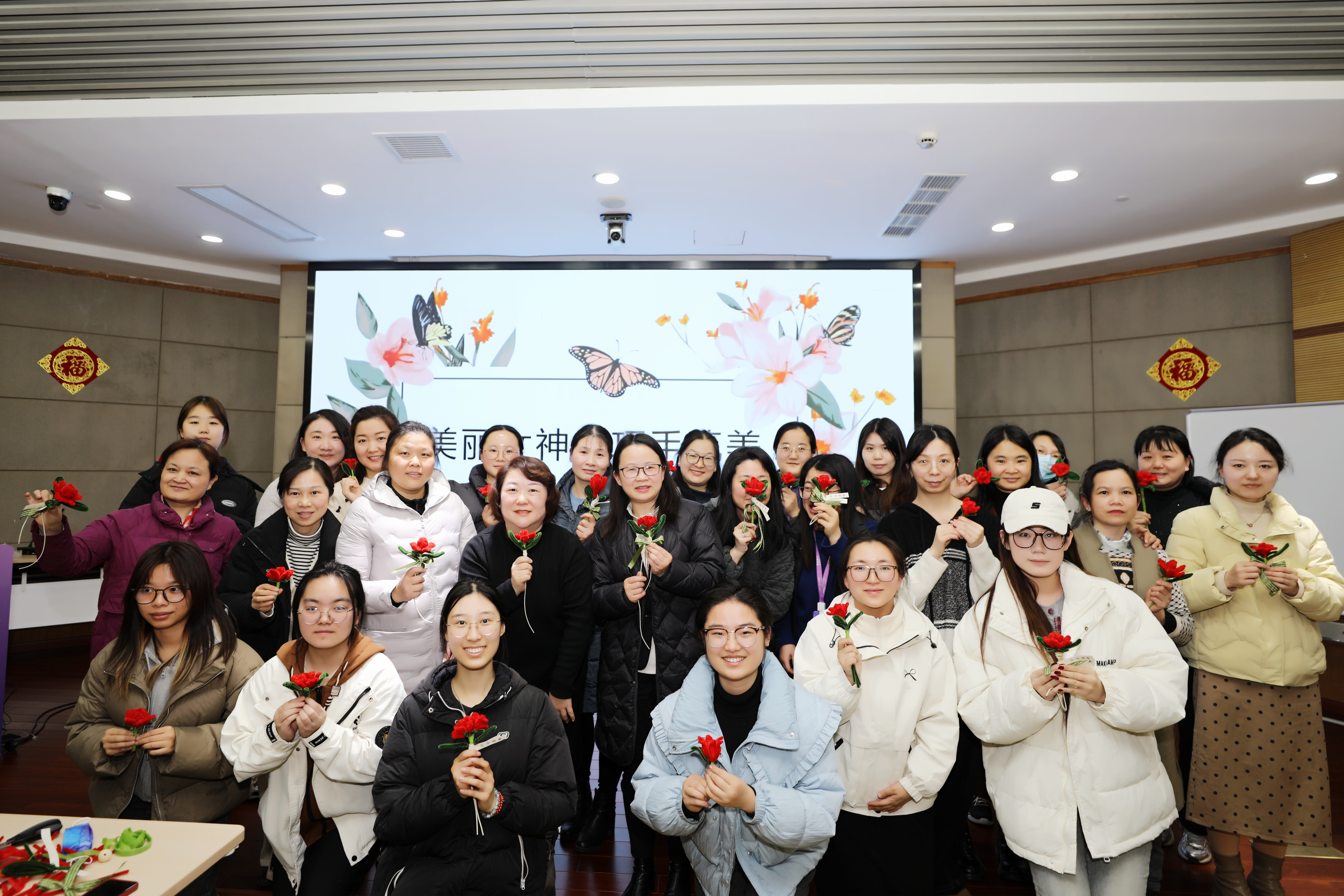 2025年3月5日下午,管理学院女教师和女学生在经管大楼A楼四楼报告厅齐聚一堂,共同开展了“美丽女神,巧手筑美”——“花朵挂件”手工制作活动。