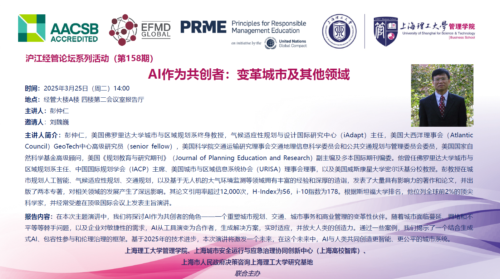 沪江经管论坛系列活动(第158期):AI作为共创者:变革城市及其他领域